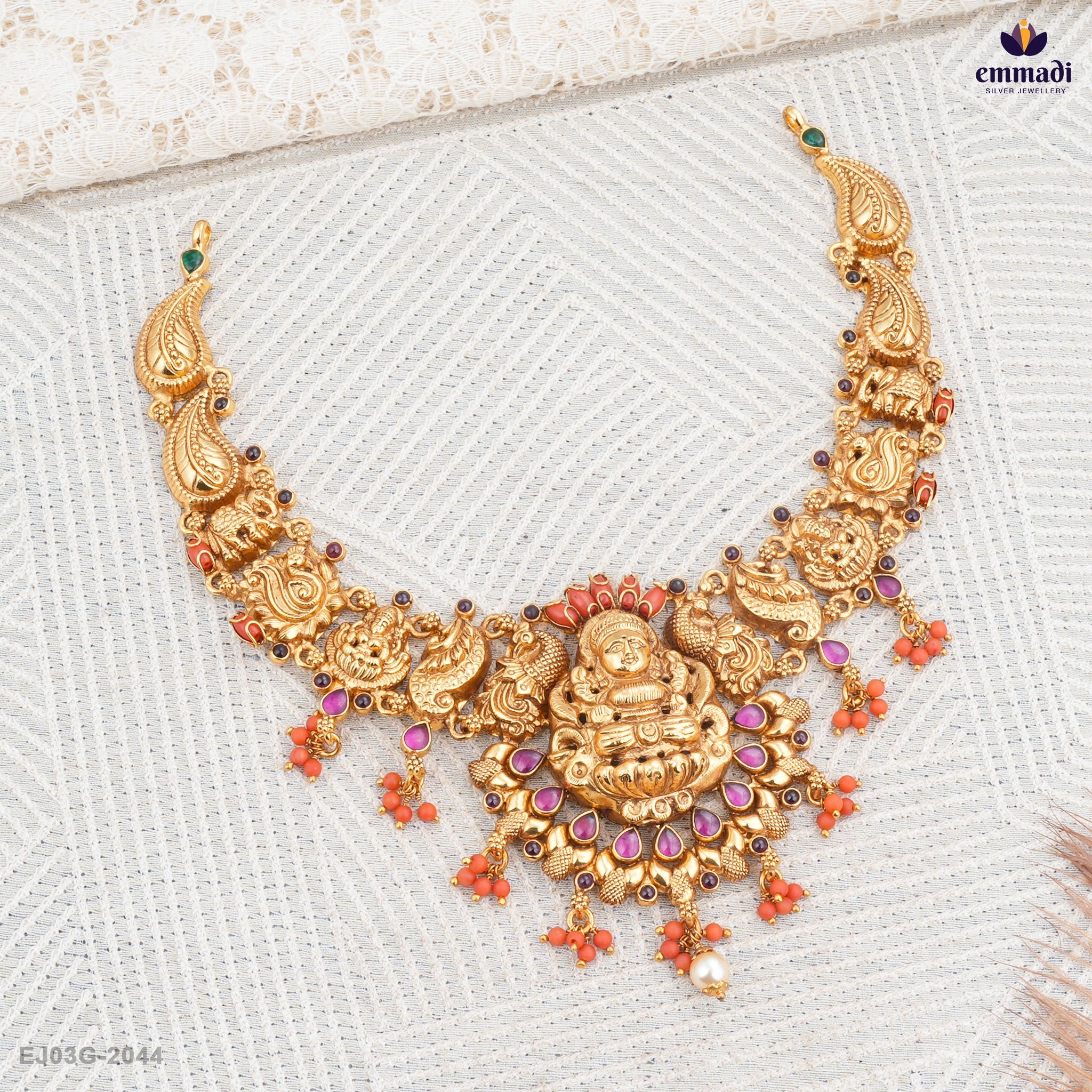 Introducing a stunning collection that embodies elegance and tradition, featuring exquisite nakshi craftsmanship and vibrant corals. This unique necklace showcases intricate designs that highlight the skilled artistry behind each piece, making it a perfect accessory for both casual and formal occasions.