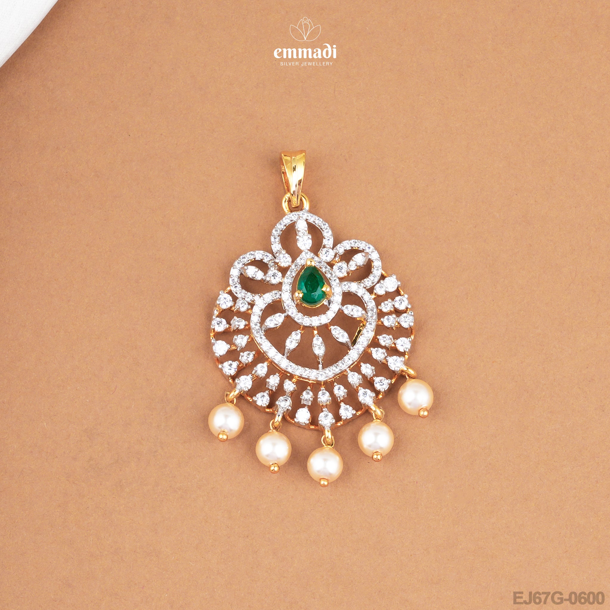 The pendant showcases a breathtaking green cubic zirconia, celebrated for its exceptional brilliance and fire, creating a sparkle that catches the eye. The vibrant hue symbolizes harmony and renewal, making it a meaningful addition to your jewellery collection. Designed with an exquisite setting, this pendant enhances its beauty while ensuring maximum comfort during wear. Its intricate craftsmanship reflects a seamless blend of modern design and traditional aesthetics, with the green stone securely held by carefully crafted prongs that allow light to dance through its facets.