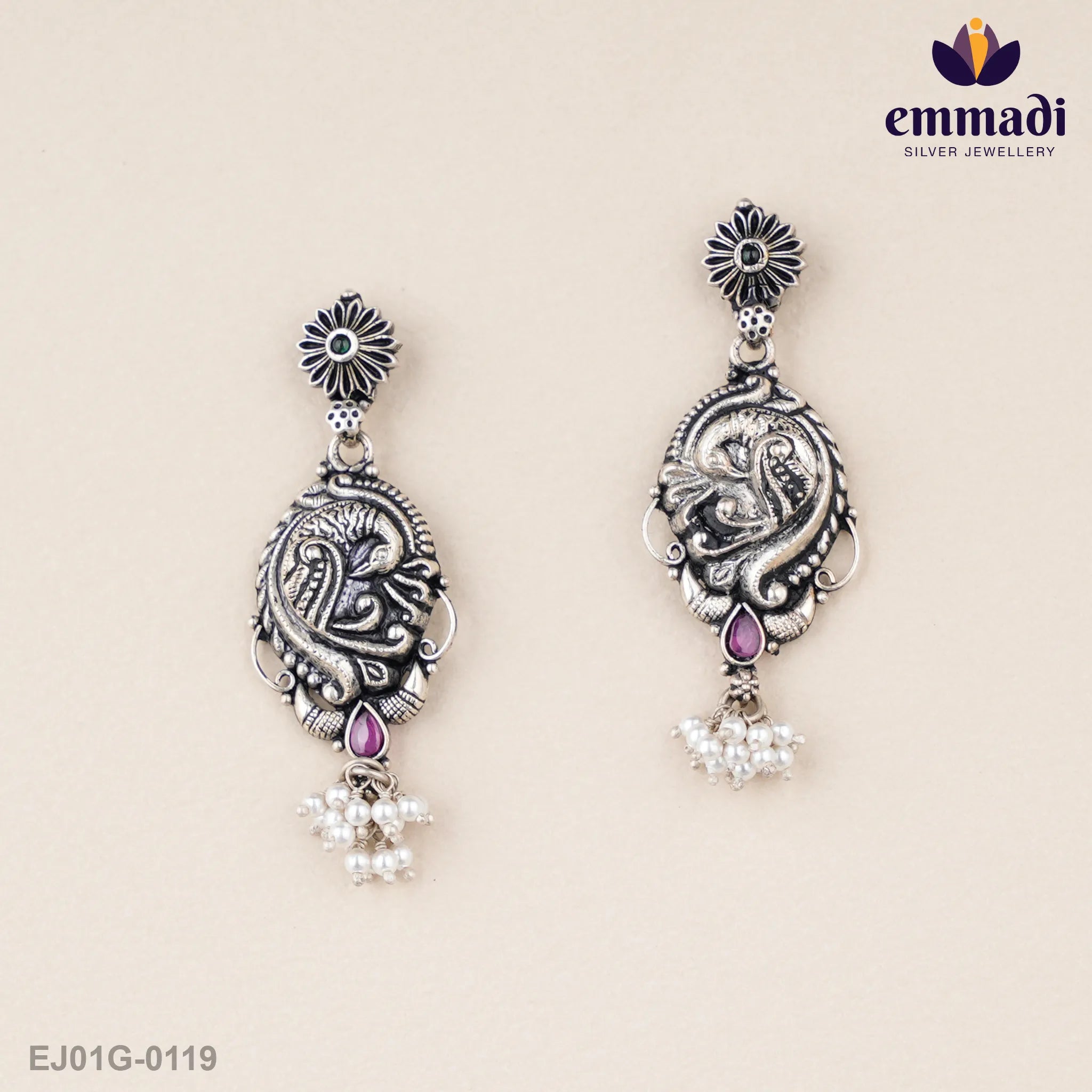 Indulge in the exquisite elegance of Daya Cz Nakshi Pink Hangings by Emmadi Silver Jeweller, India's Largest silver brand. These stunning earrings are a harmonious blend of sophistication and charm, crafted for those who appreciate the finer things in life. Elevate your style with the subtle pink hues and intricate design details that exude luxury and grace. Step into the spotlight with confidence and grace, wearing these impeccable earrings that are sure to captivate all admirers.