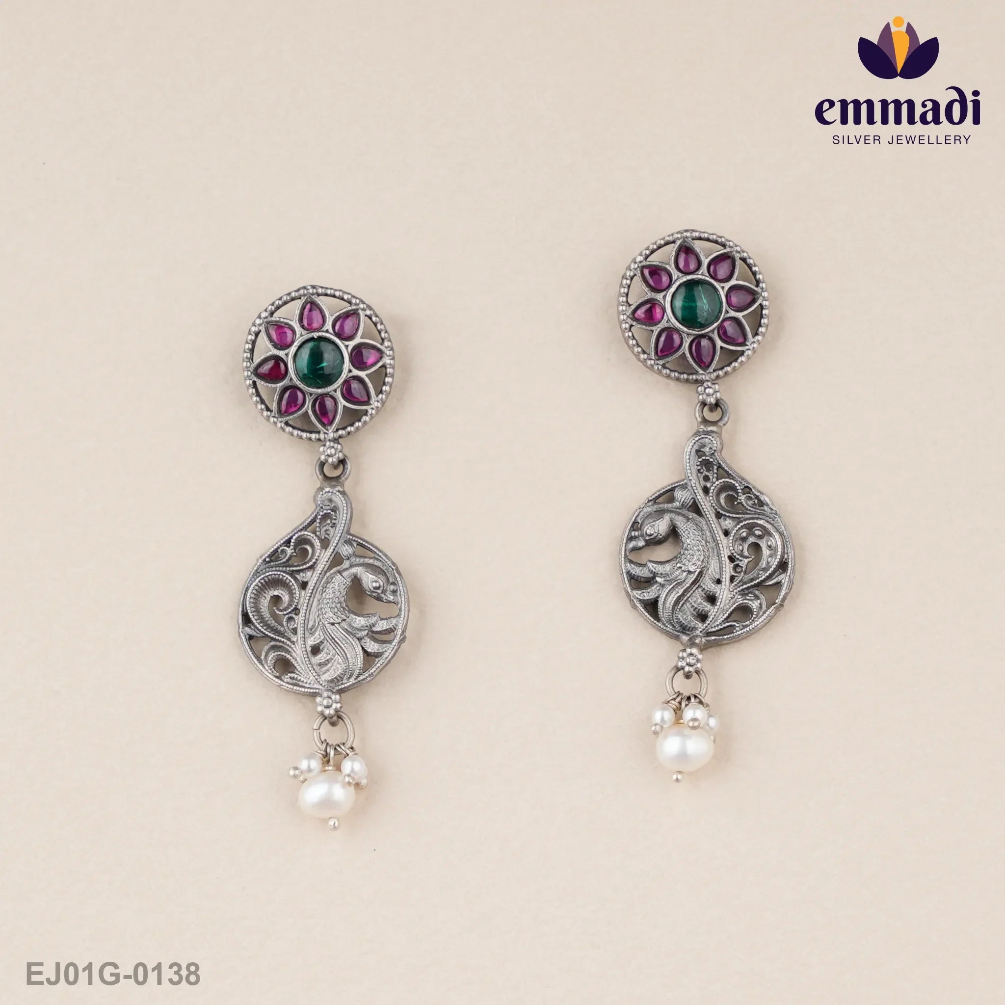 Indulge in the unparalleled elegance of Gita Cz Nakshi Multi Hangings by Emmadi Silver Jeweller, India's Largest silver brand. Elevate your style with these exquisite earrings that exude sophistication and opulence. Adorn yourself with the dazzling beauty of these hangings, beautifully crafted to complement your innate sense of glamour and luxury. Make a statement and dazzle like never before with Gita Cz Nakshi Multi Hangings. Elevate your ensemble and embrace the allure of silver with this exquisite piece of jewellery.