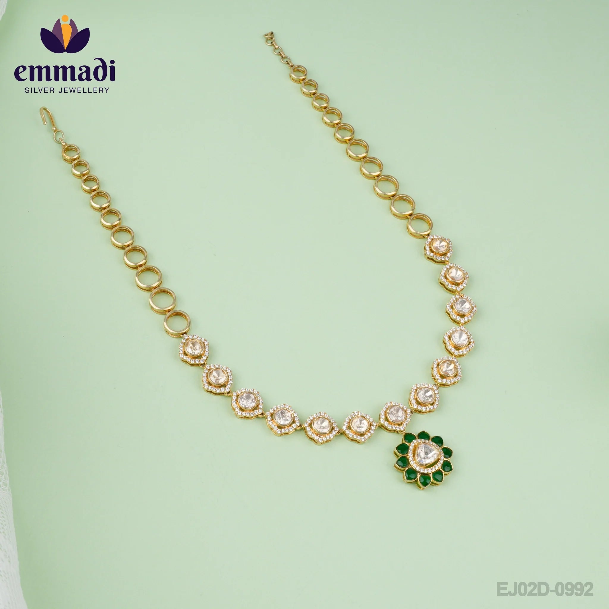 Aaliyah's Moissanite Green Necklace: Handcrafted Indian Jewellery