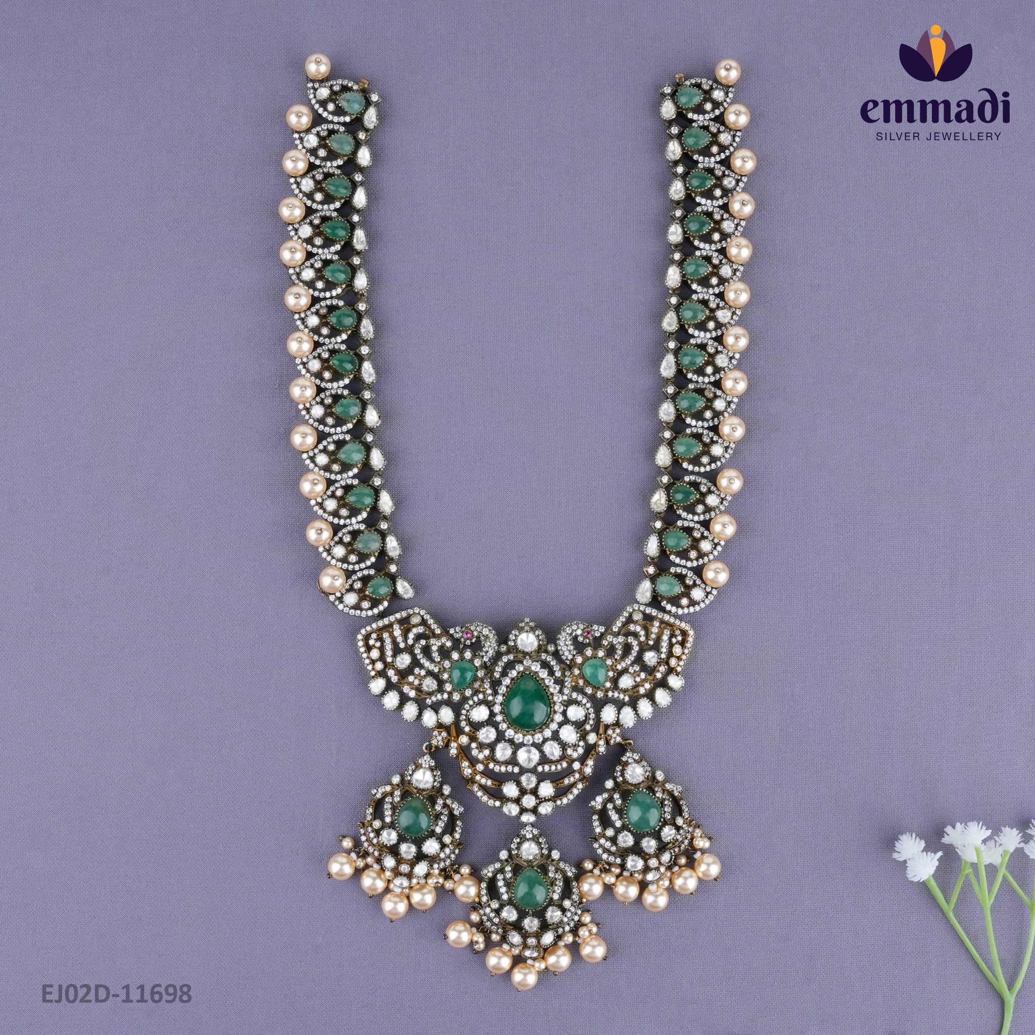 Indulge in the opulent beauty of the Suta Victorian Multi Long Necklace, a true symbol of elegance and sophistication. Crafted with exquisite attention to detail by Emmadi Silver Jeweller, India's Largest silver brand, this necklace exudes luxury and charm with its intricate design and timeless appeal. Elevate your style to new heights with this stunning piece that effortlessly blends classic Victorian charm with modern sophistication. Add a touch of royalty to your ensemble and make a statement at any occasion with this truly captivating necklace.