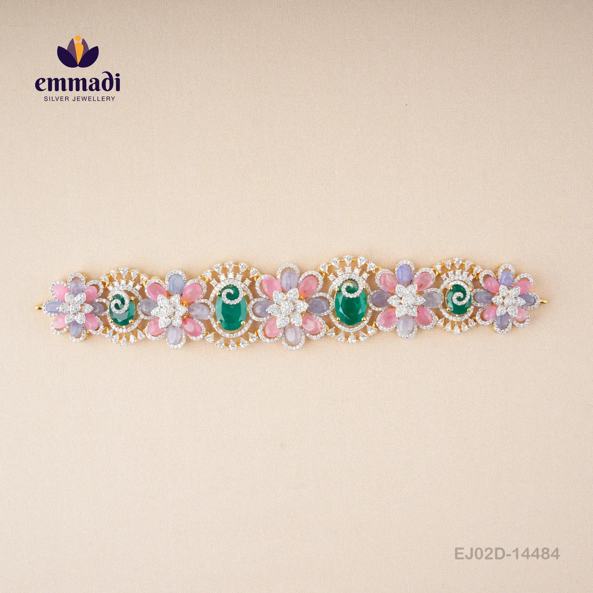Elevate your neckline with the Yosa Two Colour Stones Multi Choker, a captivating piece that exudes elegance and sophistication. Crafted by Emmadi Silver Jeweller, India's Largest silver brand, this luxurious choker features a mesmerising combination of two coloured stones, adding a touch of glamour to any outfit. Elevate your style and command attention with this exquisite choker that is sure to make you stand out from the crowd.