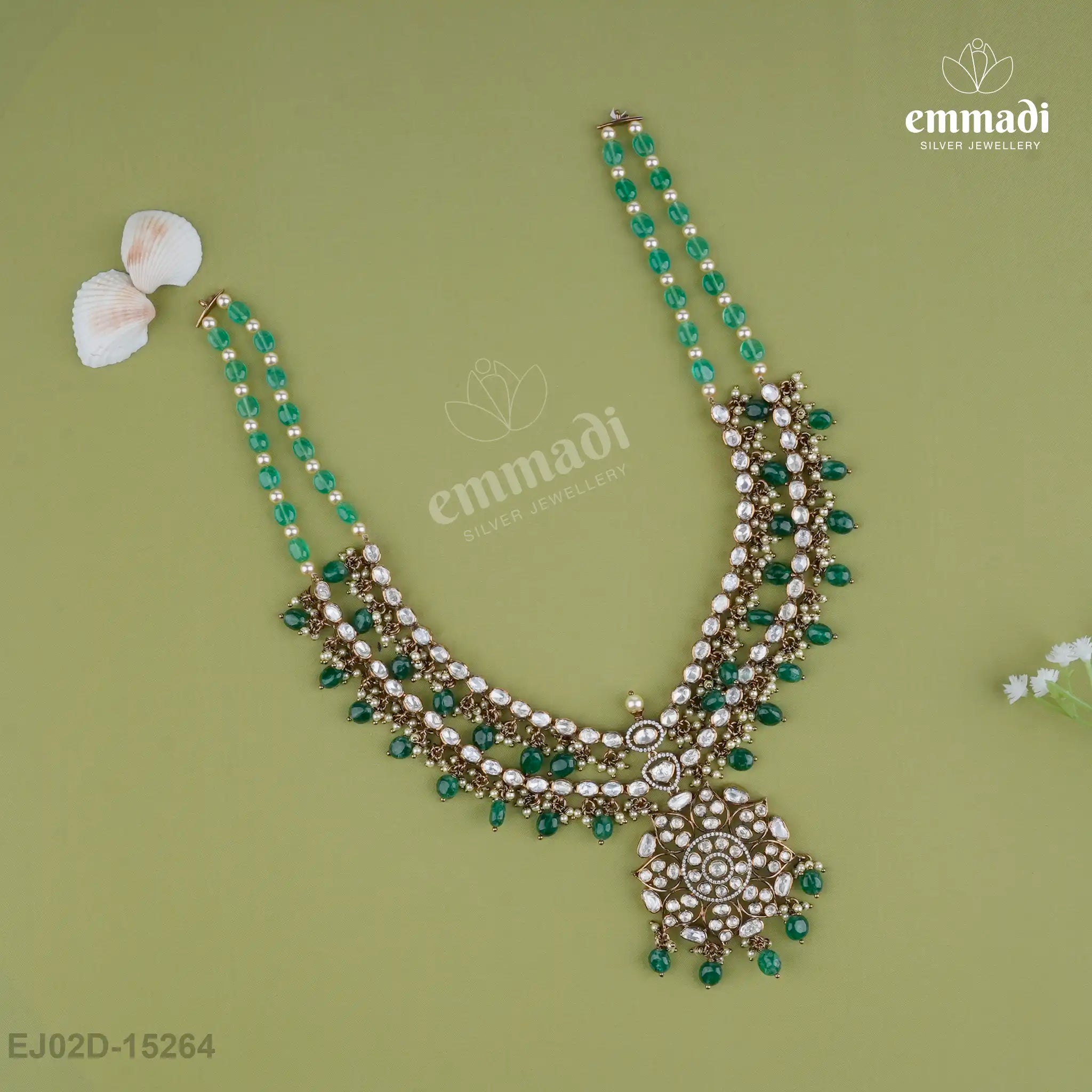 Indulge in the opulence of the Adima Victorian Green Necklace, a stunning piece from Emmadi Silver Jeweller, India's Largest silver brand. Crafted with meticulous attention to detail, this necklace exudes elegance and sophistication. The vibrant green stones add a touch of regal charm, making it the perfect accessory for those who appreciate luxury. Elevate your jewellery collection with this exquisite Victorian-inspired masterpiece.