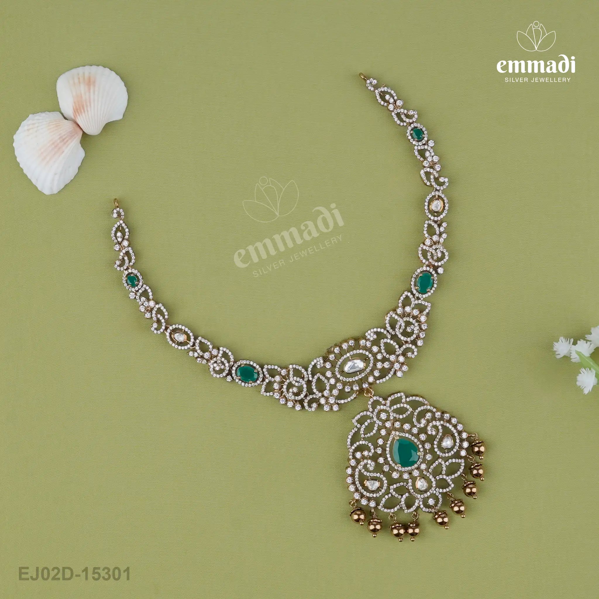 The Victorian Green Necklace features a stunning design inspired by the opulence of the Victorian era, with intricate detailing and sparkling green stones that add a pop of color and sparkle. The necklace is designed to be versatile and can be worn for both formal events and everyday occasions.