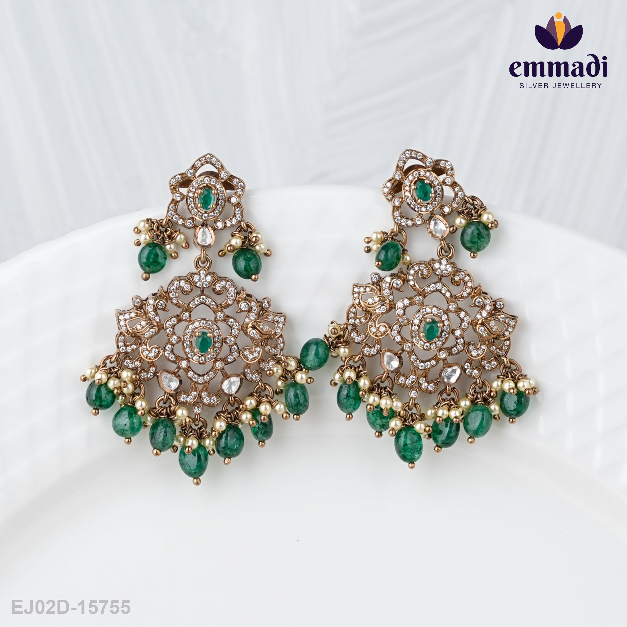 The green gemstones used in these earrings are carefully selected for their rich color and clarity, adding a pop of color to any outfit. Whether you're dressing up for a special occasion or simply looking to add a touch of glamour to your everyday look, Suman's Victorian Green Hangings are the perfect choice.