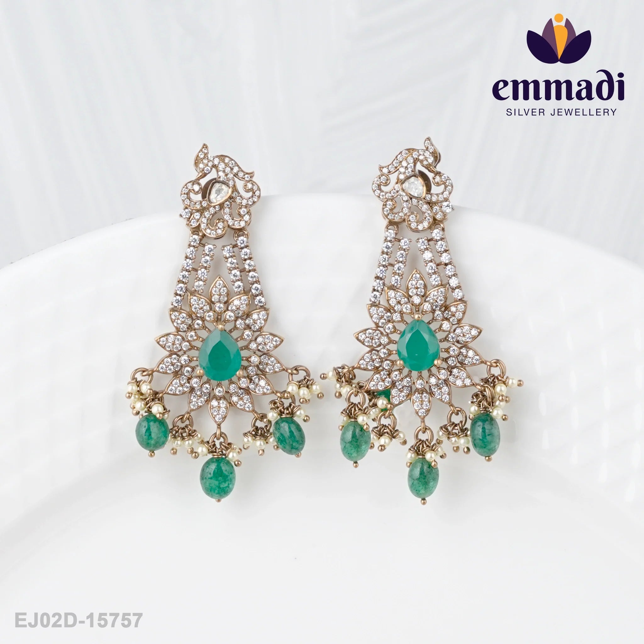 The green gemstones used in these earrings are carefully selected for their rich color and clarity, adding a pop of color to any outfit. Whether you're dressing up for a special occasion or simply looking to add a touch of glamour to your everyday look, Suman's Victorian Green Hangings are the perfect choice.
