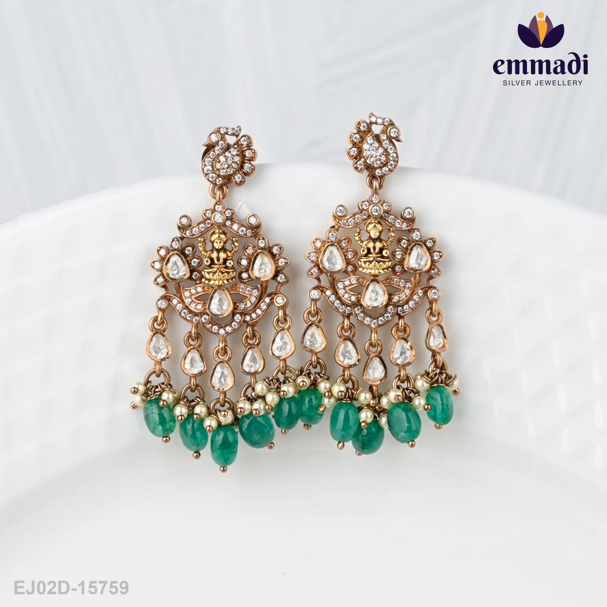 Step into opulence with the Atapa Victorian Green Hangings from Emmadi Silver Jeweller, India's Largest silver brand. These exquisite earrings exude Victorian elegance with their intricate design and mesmerizing green hue. Elevate your look to new heights with a touch of glamour and sophistication. Make a statement with every sway, showcasing your impeccable taste in fine jewellery. Indulge in luxury with the Atapa Victorian Green Hangings, a true masterpiece in silver craftsmanship.