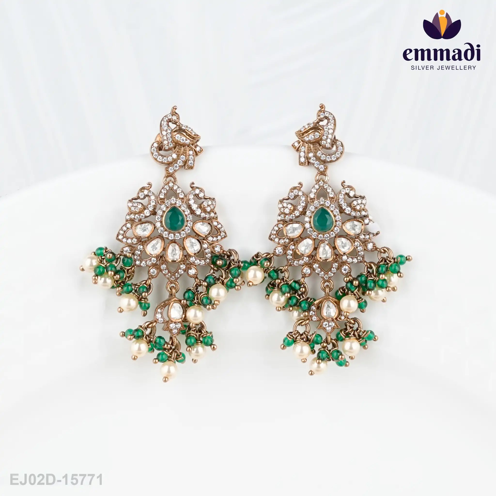 Indulge in opulence with Bibha Victorian Green Hangings by Emmadi Silver Jeweller, India's Largest silver brand. ���� Adorn yourself with these exquisite earrings that exude Victorian charm and timeless elegance. Whether gracing a special occasion or adding a touch of sophistication to your everyday look, these hangings are a symbol of luxury and grace. Elevate your style and captivate onlookers with the enchanting allure of Bibha Victorian Green Hangings.