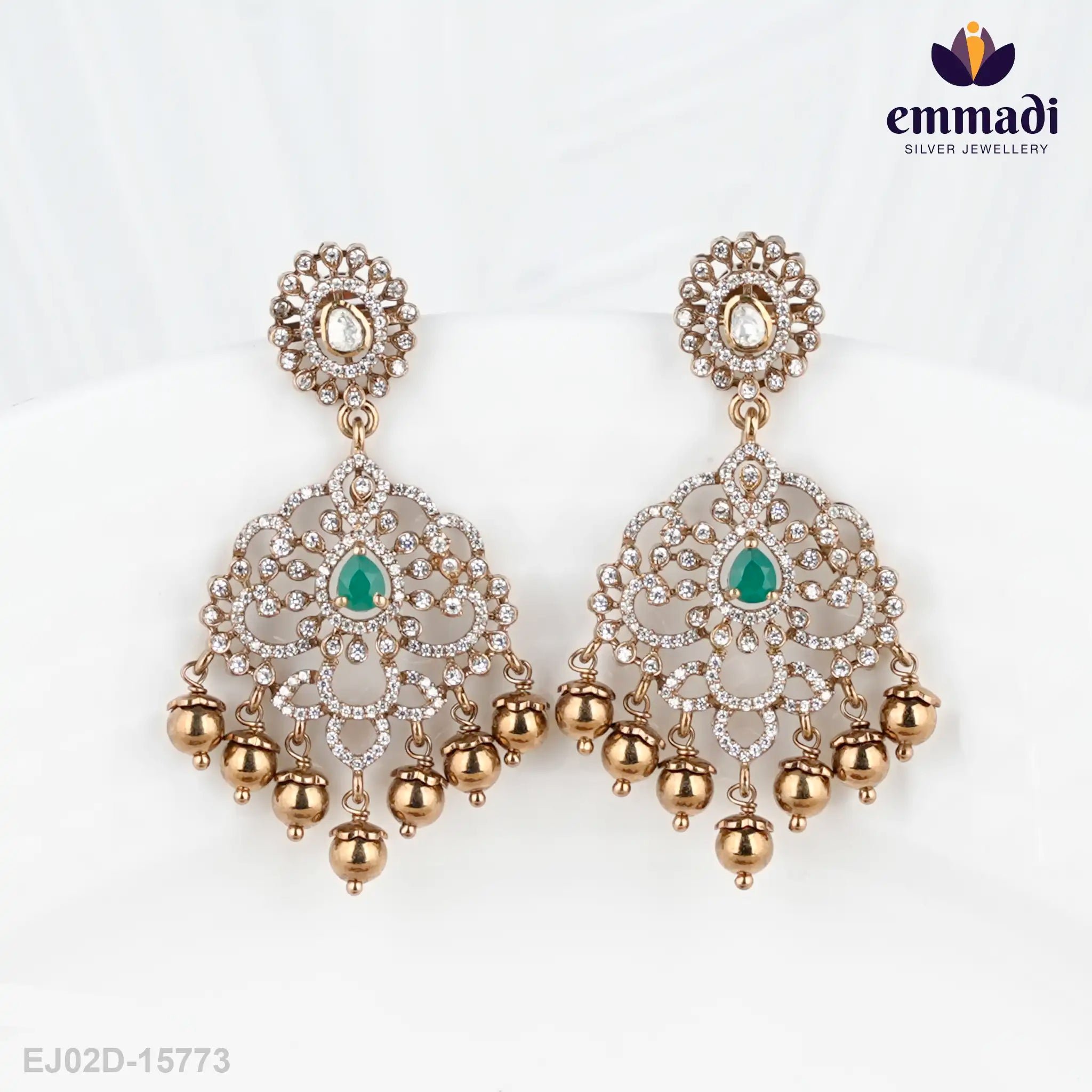 Indulge in opulence with Bilwa Victorian Green Hangings by Emmadi Silver Jeweller, India's Largest silver brand. Elevate your style with these exquisite earrings, a stunning blend of Victorian charm and modern elegance. Dripping with sophistication, the vibrant green stones are perfectly complemented by intricate silver detailing, making each pair a true work of art. Enhance your ensemble with a touch of luxury and grace, exuding confidence and refinement with every wear. Elevate your look to new heights with these captivating earrings.