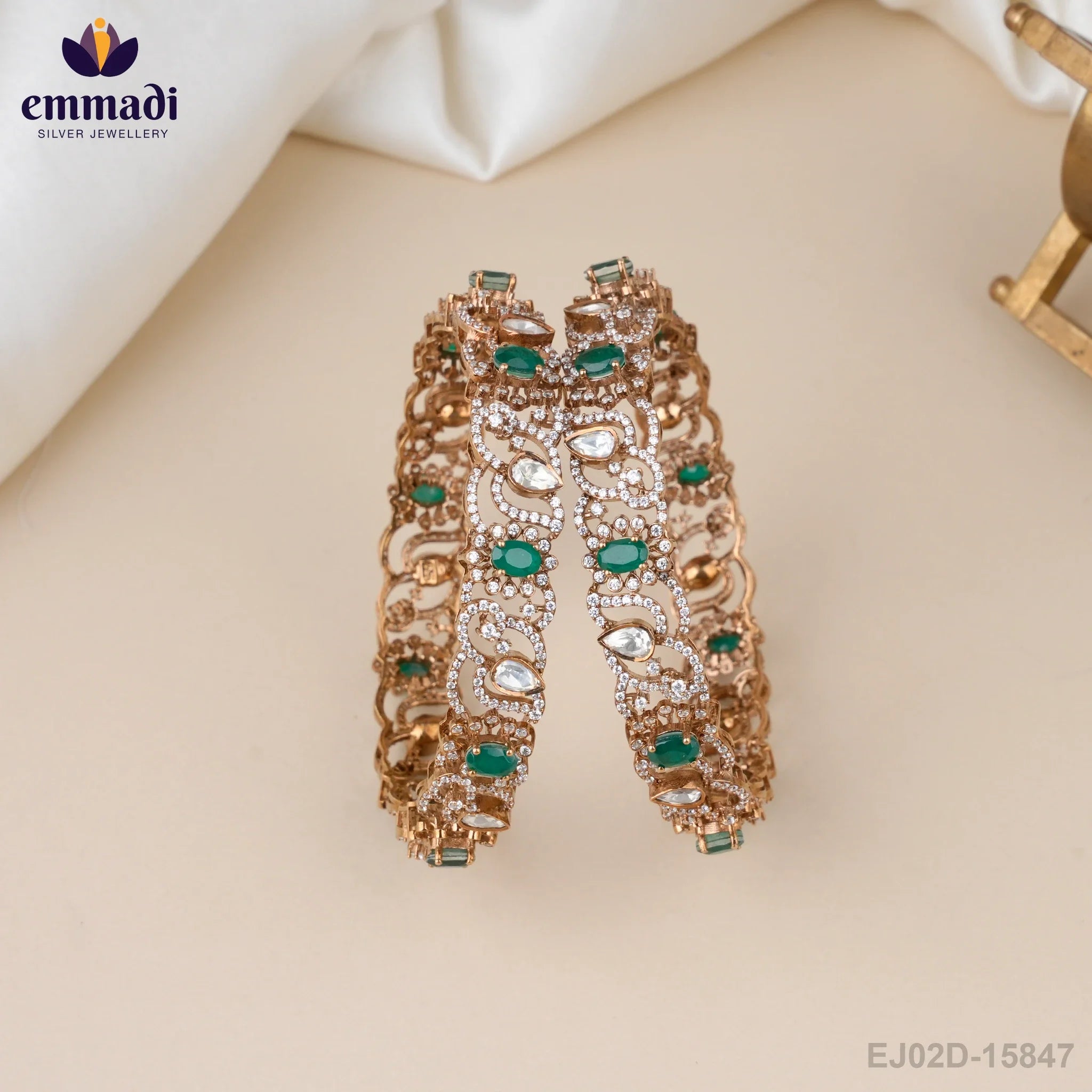 Indulge in the exquisite allure of the Dhupa Victorian Green Bangles by Emmadi Silver Jewellery, India's Largest Silver Brand. These bangles exude timeless elegance with their captivating green hues and meticulous craftsmanship. Elevate your ensemble to unparalleled heights as you embrace the opulence and sophistication of the Victorian era. Add a touch of luxury to your style and make a radiant statement with these must-have accessories for the discerning fashion connoisseur. Elevate your jewellery collection and embrace the grace of the Dhupa Victorian Green Bangles.