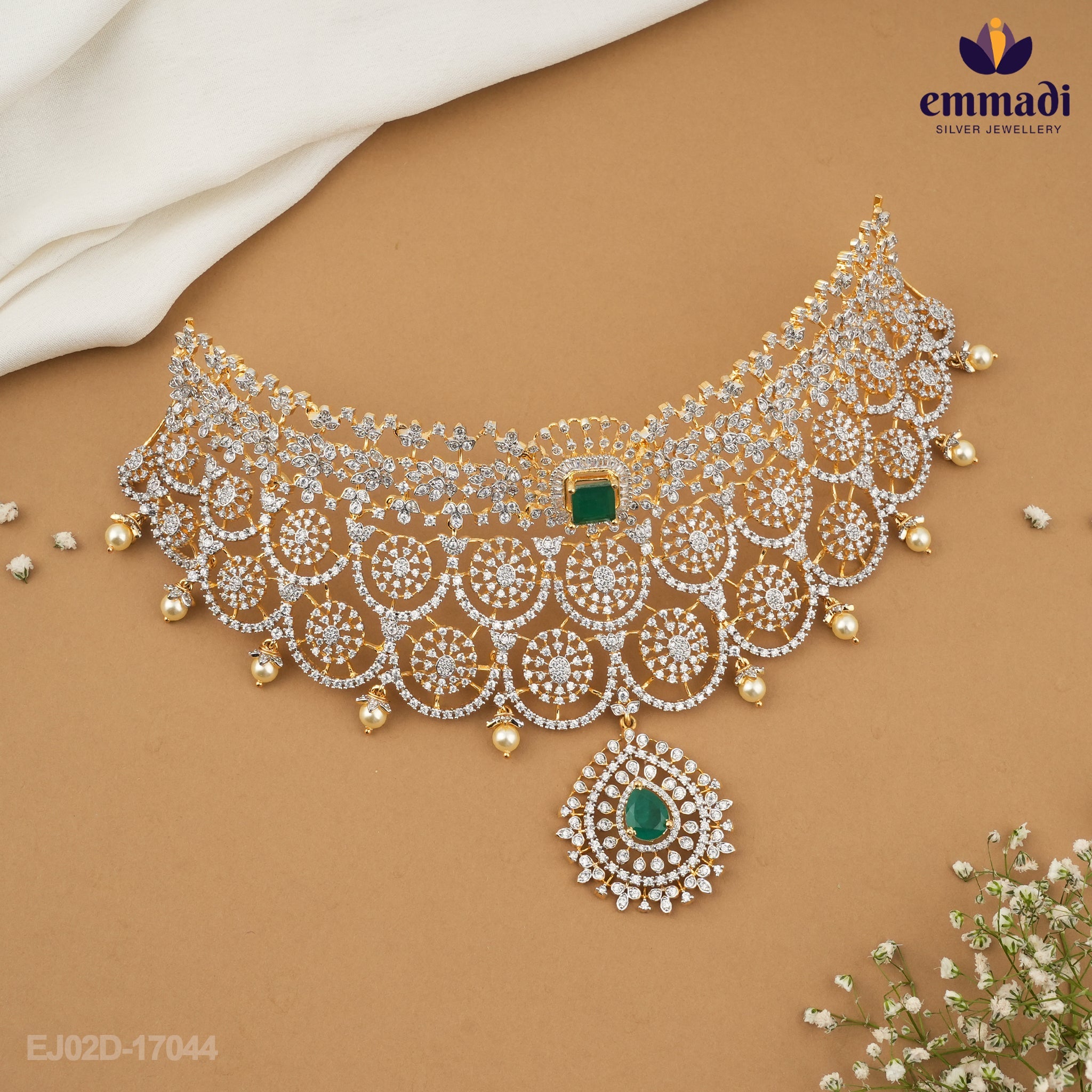 Designed by the renowned designer Emmadi, the choker features a delicate pure gold plating, adding a touch of glamor that is perfect for special occasions. While this piece is not intended for daily wear, it is perfect for elevating those significant moments in your life, such as anniversaries, weddings, or parties where you want to make an unforgettable impression.
