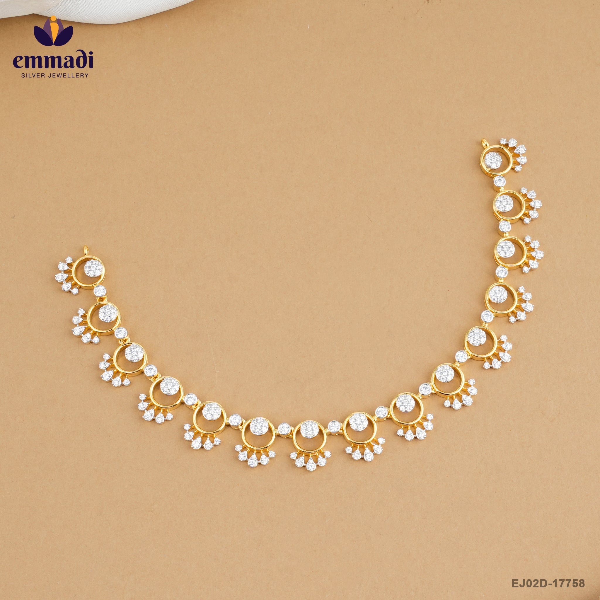 The design highlights the dazzling white CZ stones, known for their clarity and brilliance, ensuring that each necklace is a showstopper. The brilliant-cut CZs are set with precision, capturing light from every angle and sparkling beautifully against any outfit, be it casual or formal.