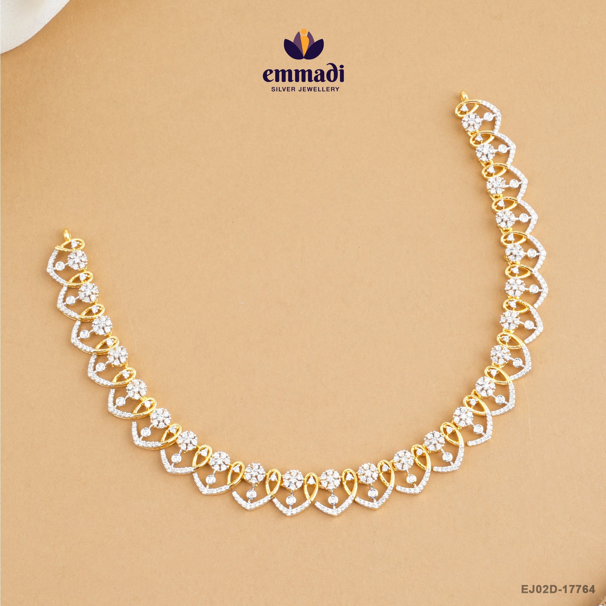 The necklace showcases an intricate design that drapes gracefully around your neckline, highlighting your beauty effortlessly. The sparkling white cubic zirconia is set in a durable yet delicate framework, ensuring the stones remain securely in place while offering a breathtaking display of light. The versatile design makes it easy to pair with other jewelry pieces or wear alone for a more understated look.