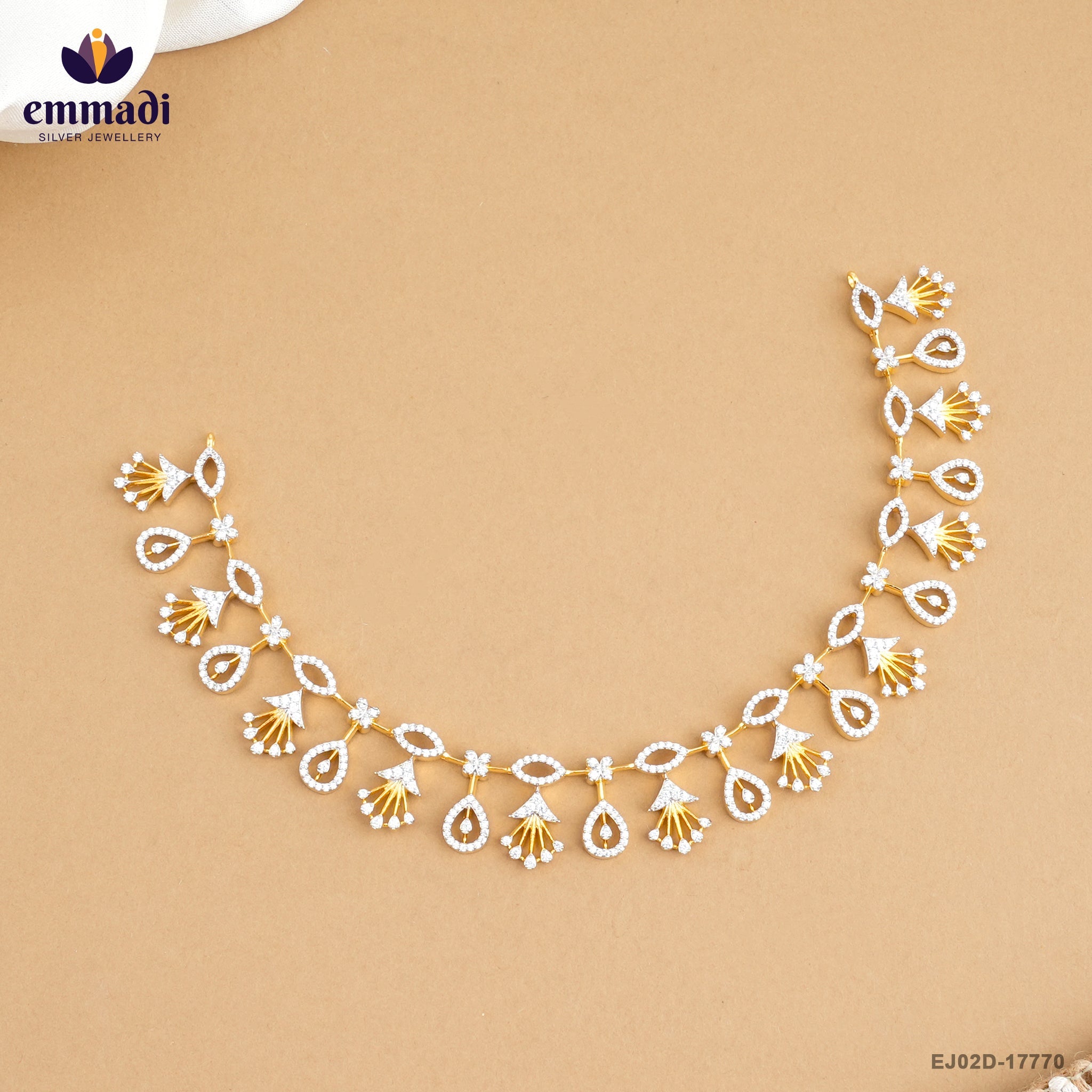 Discover elegance with the Anindita Silver Premium CZ Necklace, crafted for those who appreciate the allure of fine jewelry. This exquisite piece showcases an intricate design that highlights the brilliance of high-quality cubic zirconia stones set against a lustrous silver backdrop. The shimmering white color of the CZ stones radiates sophistication, making it an ideal accessory for both casual and formal occasions.