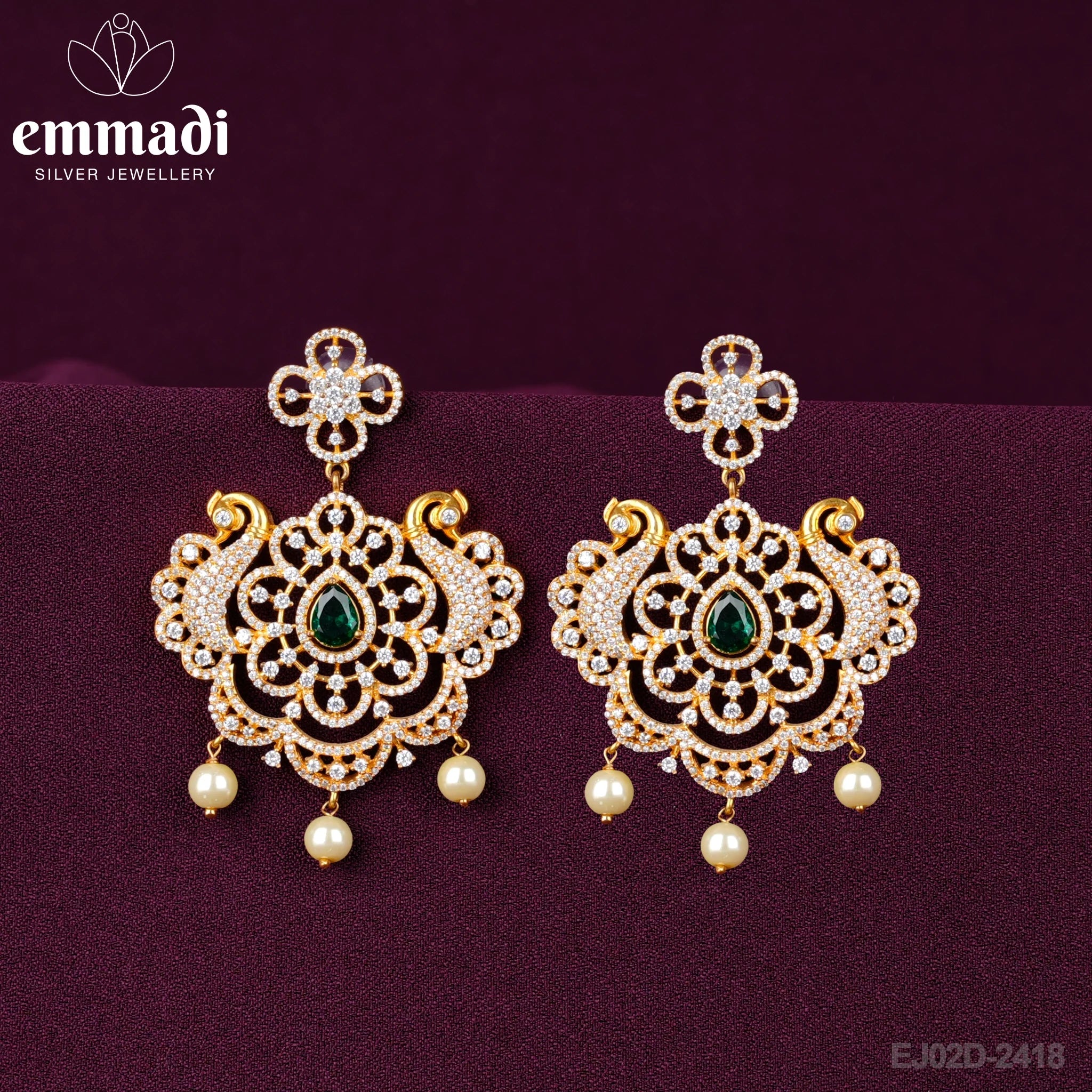 Indulge in luxury and style with the Indradhanush Handcrafted Premium CZ Green Hangings from Emmadi Jewellers. Elevate your look and add a touch of glamour to any ensemble with these exquisite earrings that are sure to become a treasured addition to your jewelry collection.