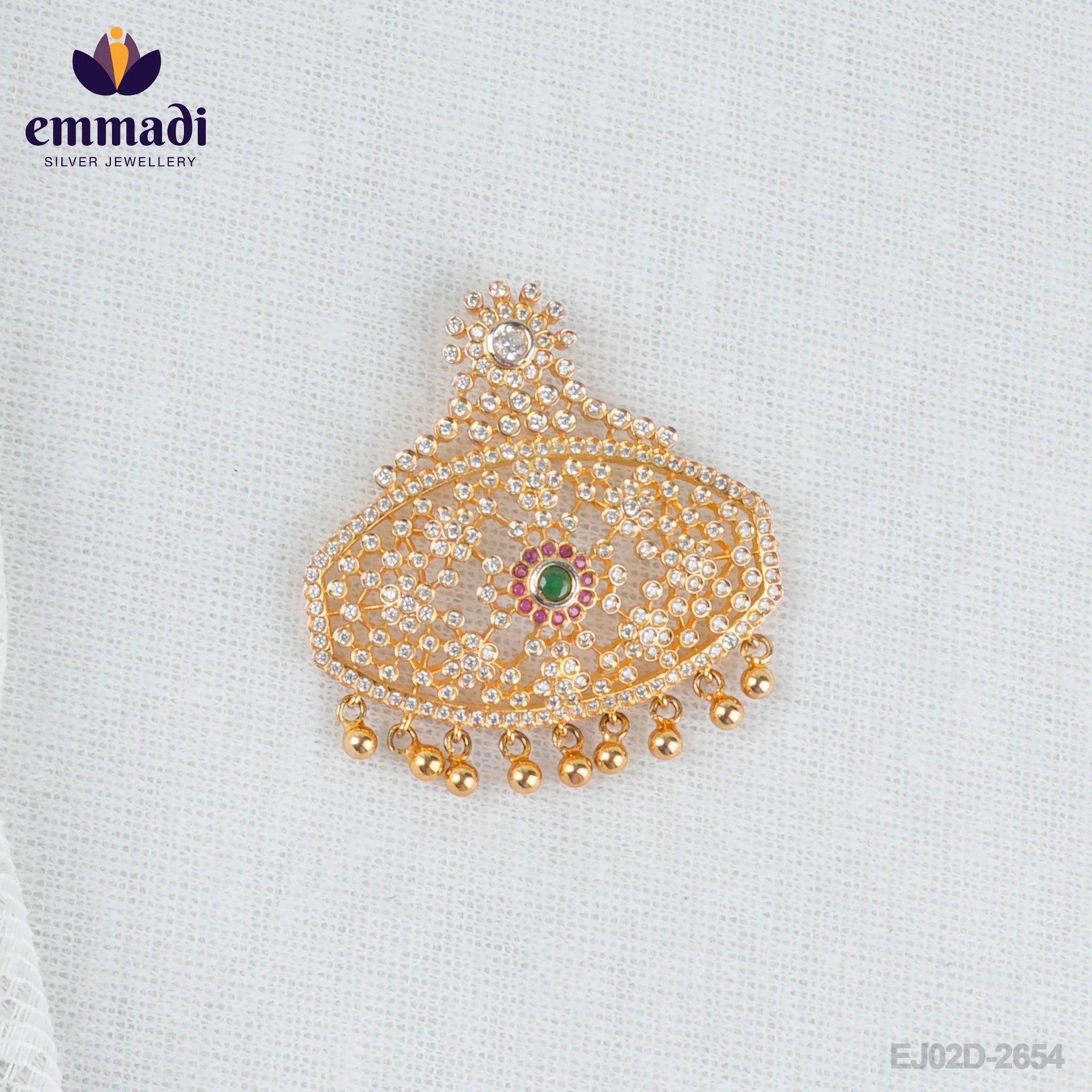 Agni, meaning fire in Sanskrit, represents the fiery passion and elegance that embodies this exquisite handcrafted pendant by Emmadi Jewellers. Made with pure 92.5 silver and plated with gold, this pendant is a true work of art that showcases traditional Indian craftsmanship at its finest.