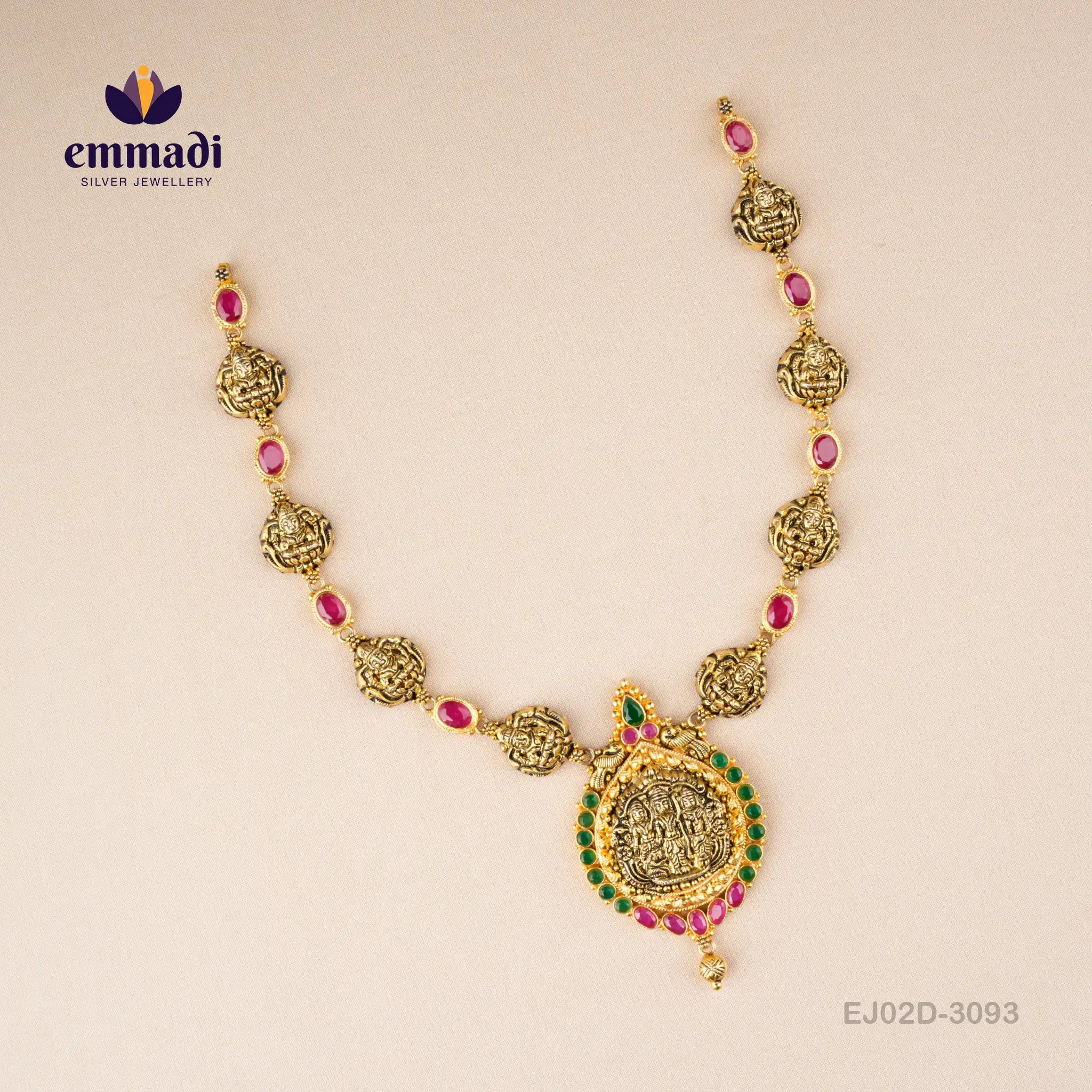 The necklace is adorned with multiple layers of gold plating, giving it a rich and luxurious look that will surely make a statement. The use of pure 92.5 silver ensures that the necklace is not only beautiful but also durable and long-lasting.