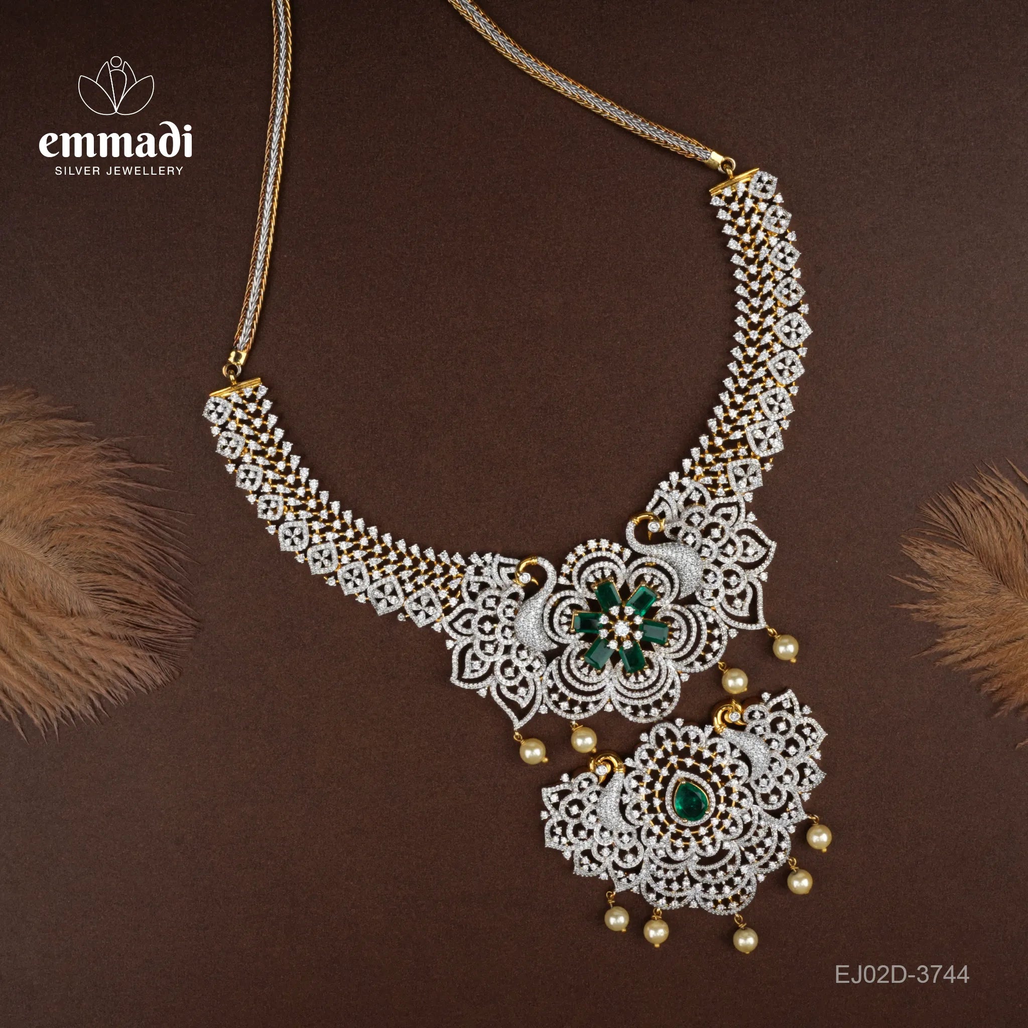 The focal point of this necklace is the breathtaking green CZ stone that is meticulously cut and faceted to perfection, capturing the light and radiating a brilliant sparkle. The traditional Indian design is enhanced by the use of pure gold plating, adding a touch of luxury and opulence to the piece. Crafted from pure 92.5 sterling silver, this necklace is not only beautiful but also durable and long-lasting.