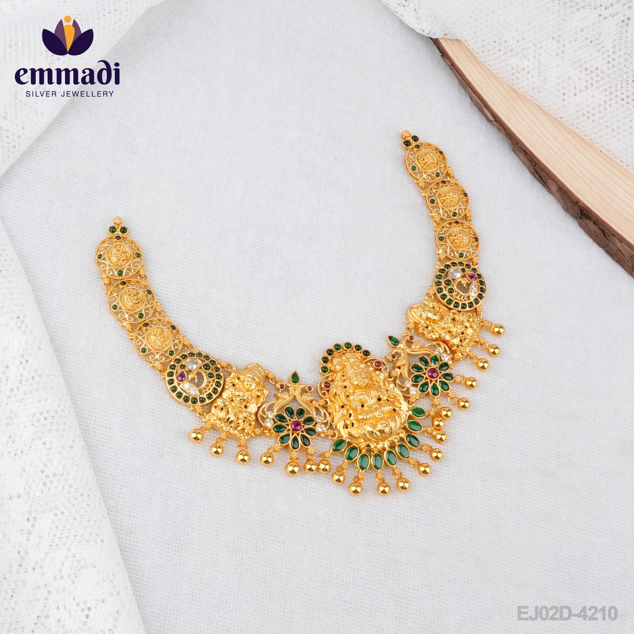 The necklace is adorned with multiple layers of gold plating, giving it a rich and luxurious look that will surely make a statement. The use of pure 92.5 silver ensures that the necklace is not only beautiful but also durable and long-lasting.