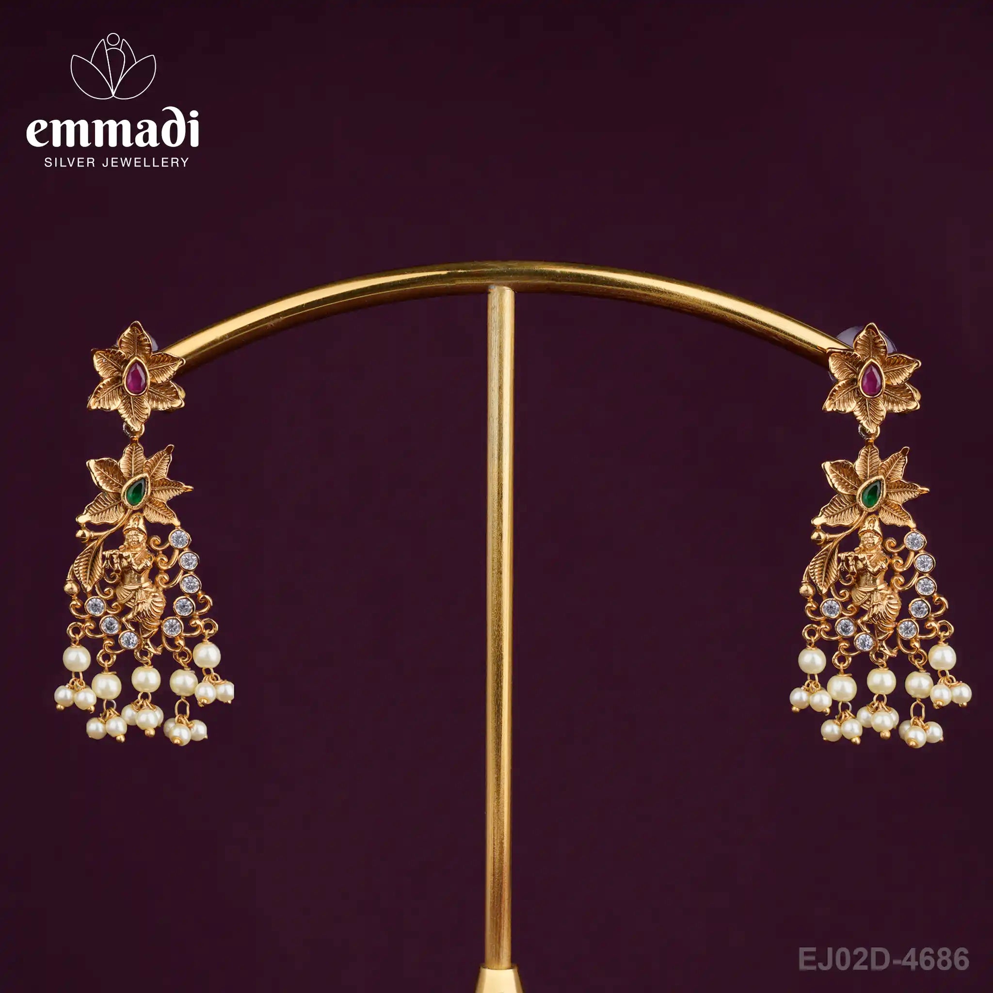 Introducing the Gaula Premium Antique Green Hangings by Emmadi Silver Jeweller, the epitome of elegance and luxury. Adorn yourself with these exquisite earrings that effortlessly blend timeless charm with modern sophistication. The antique green hue adds a touch of uniqueness, making them a standout accessory for any occasion. Elevate your style and make a statement with these precious earrings from India's Largest silver brand.