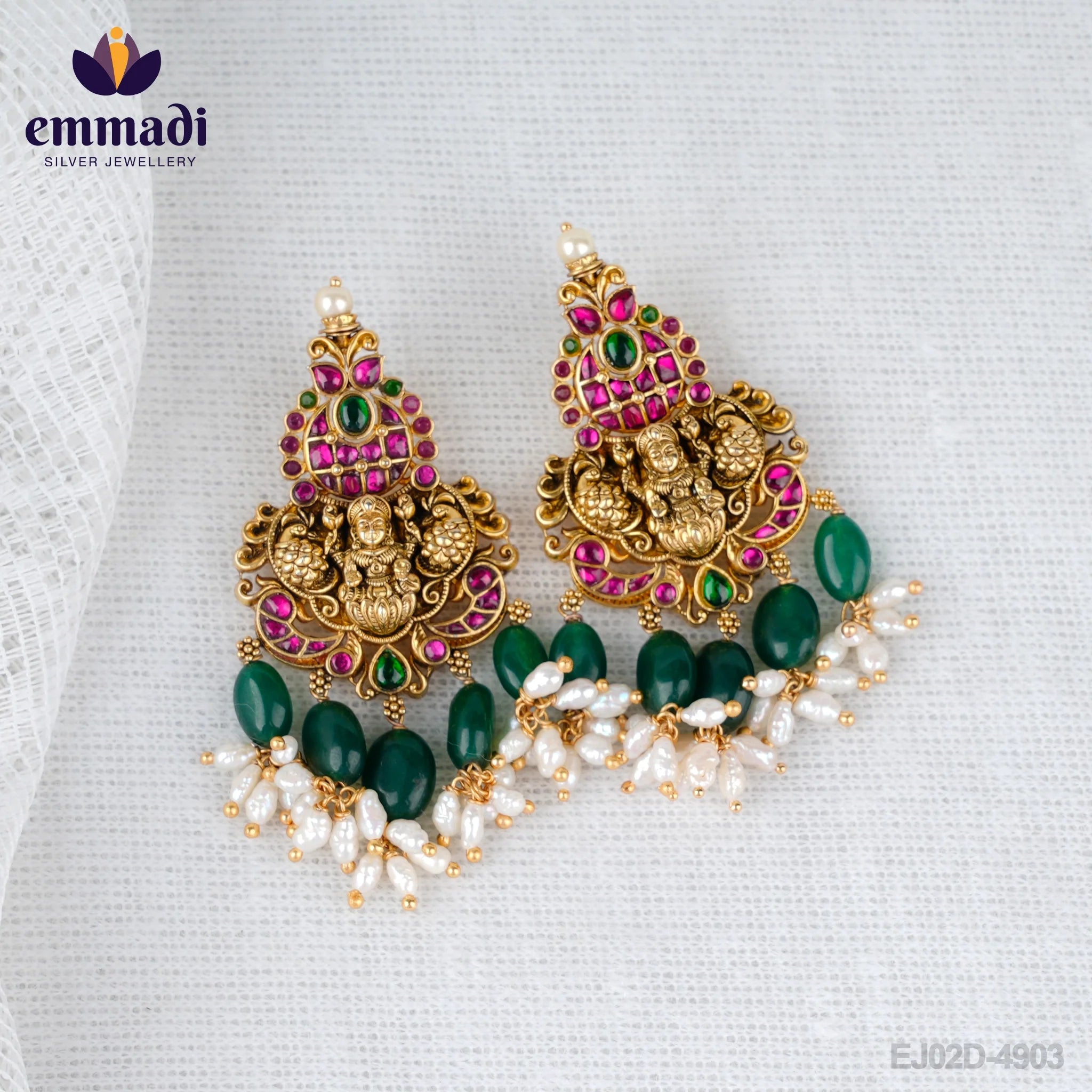 Kamalika Handcrafted Gold Plated Earrings are exquisite pieces of jewelry designed and made by Emmadi Jewellers. These earrings are made from 92.5% silver and plated with pure gold, giving them a luxurious and elegant look. The intricate design of these earrings is inspired by traditional Indian nakshi work, adding a touch of cultural heritage to your wardrobe.