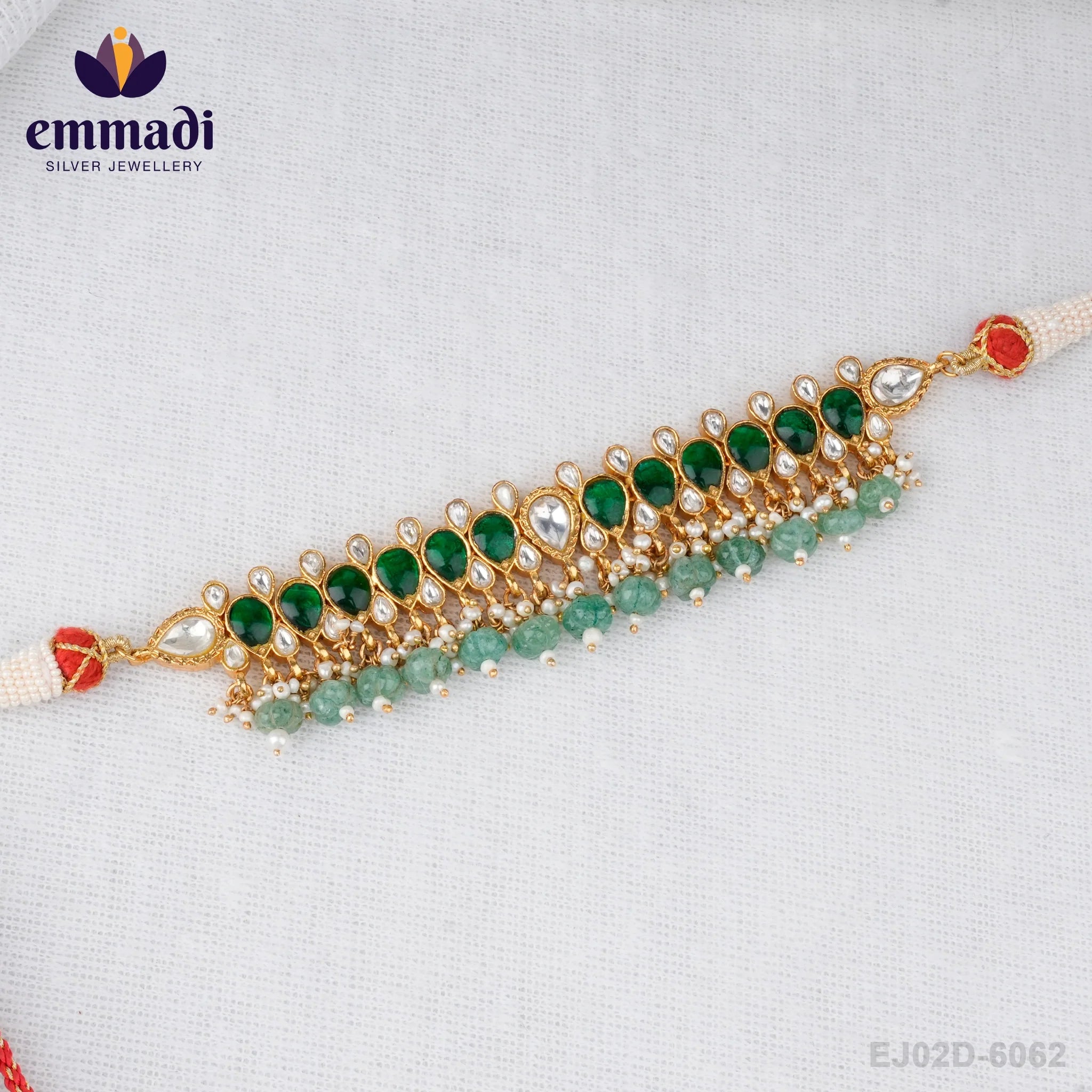 - Pure 92.5 Silver: The base metal of our Kundan Green Chokers is pure 92.5 silver, known for its durability and shine. This high-quality metal ensures that your choker retains its luster and beauty over time.