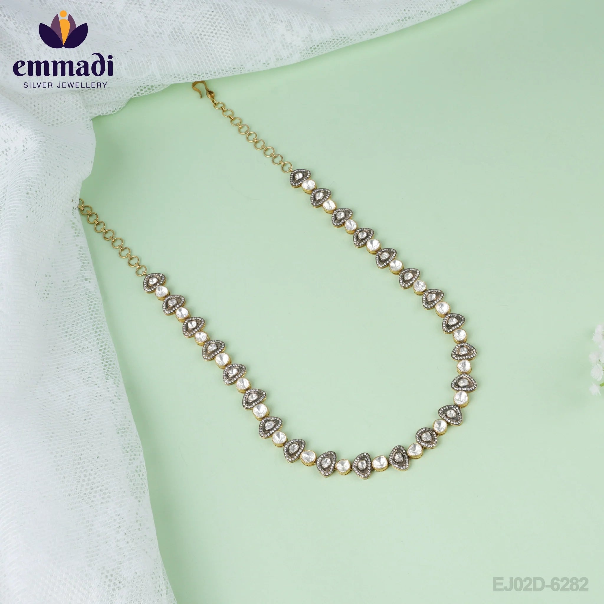 Emmadi Jewellers presents the exquisite Nakshi Pendant, a stunning piece of jewelry handcrafted with pure gold plating on 92.5 silver. The intricate design of the pendant is inspired by traditional Indian nakshi work, known for its detailed and ornate patterns.