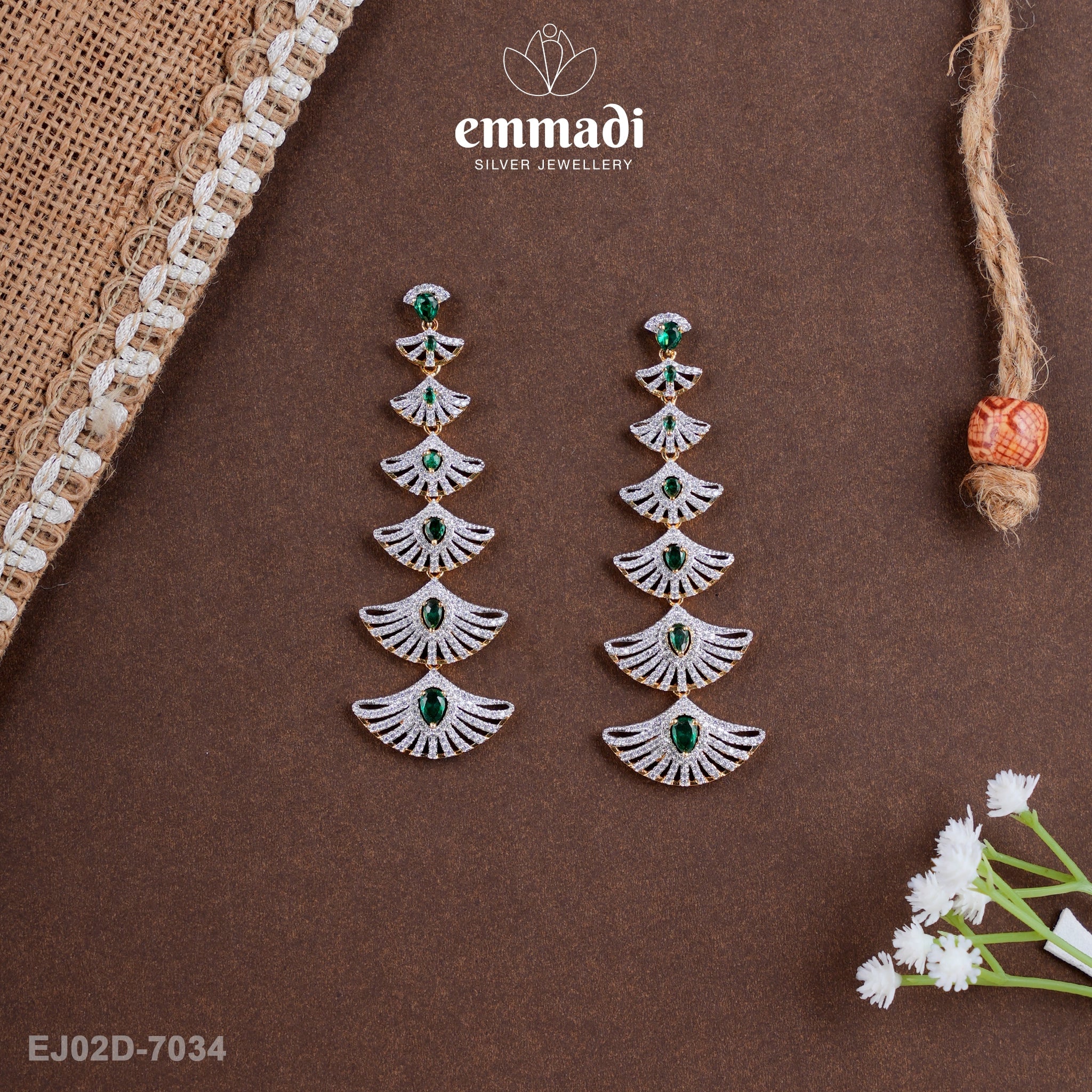 Indulge in the pinnacle of elegance with Jisha Premium Cz Green Hangings, a true masterpiece from Emmadi Silver Jeweller, India's Largest silver brand. ���� Adorn yourself with these exquisite earrings, each sparkling with a captivating green hue that exudes luxury and sophistication. Elevate your style and make a statement with these flawless accessories that perfectly blend timeless charm with contemporary allure. Dive into a world of opulence with Jisha Premium Cz Green Hangings - a must-have for the discerning, modern woman.