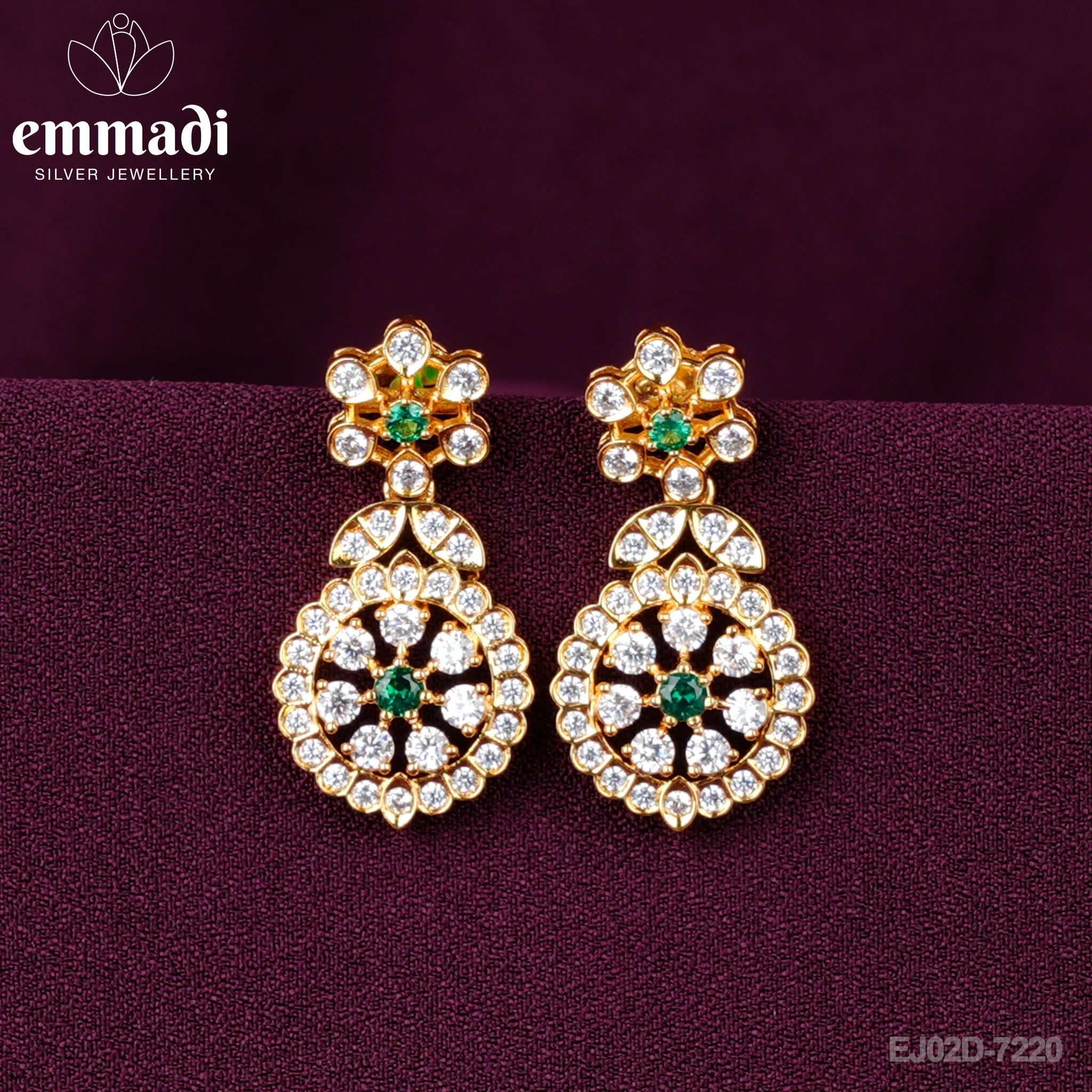Indulge in luxury and style with the Indradhanush Handcrafted Premium CZ Green Hangings from Emmadi Jewellers. Elevate your look and add a touch of glamour to any ensemble with these exquisite earrings that are sure to become a treasured addition to your jewelry collection.