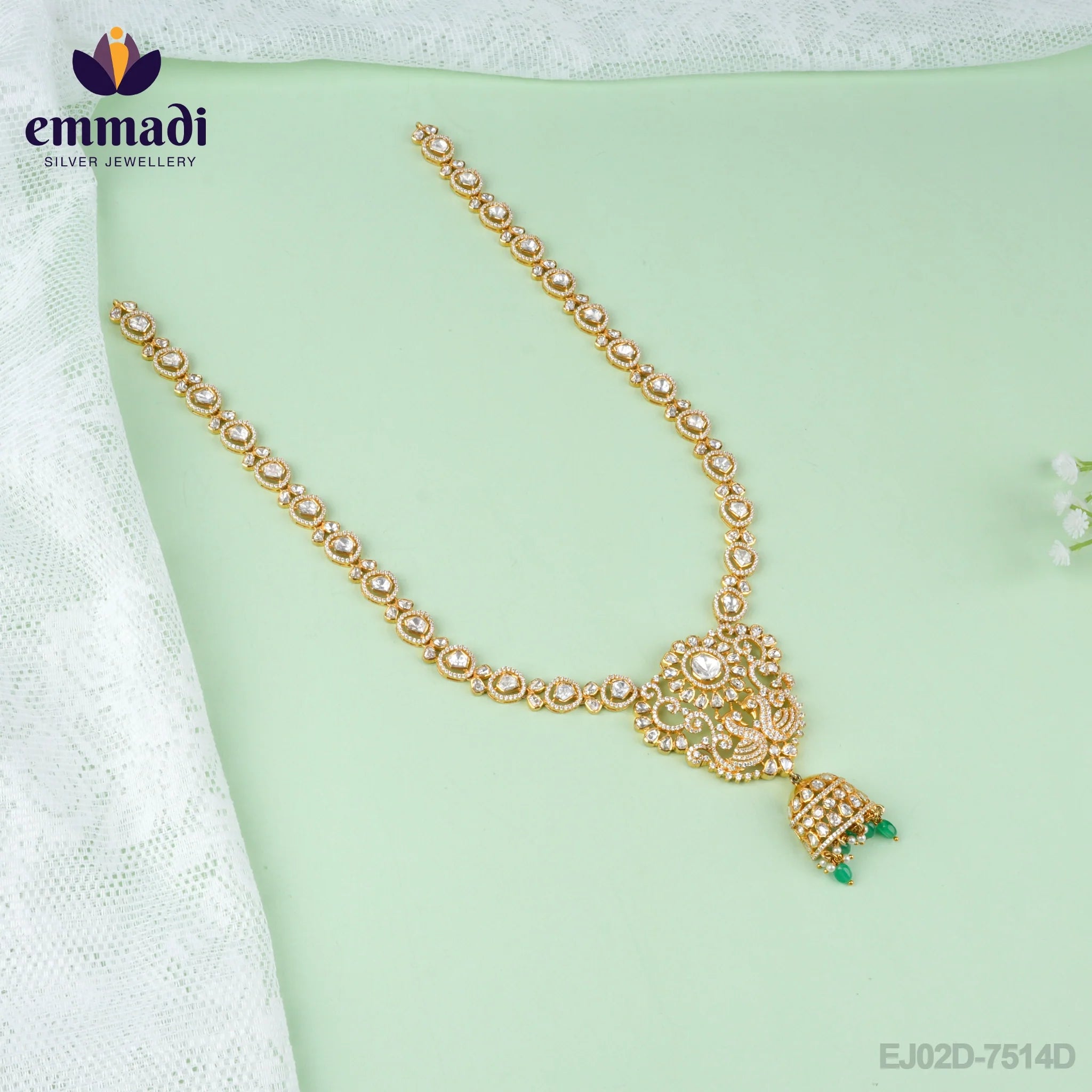 Indradhanus, meaning "rainbow" in Sanskrit, represents the colorful and exquisite beauty of this handcrafted long necklace designed by Emmadi Jewellers. Our skilled artisans have meticulously crafted this piece using high-quality 92.5 silver and pure gold plating, adorned with shimmering Moissanite white stones for a touch of elegance and luxury.