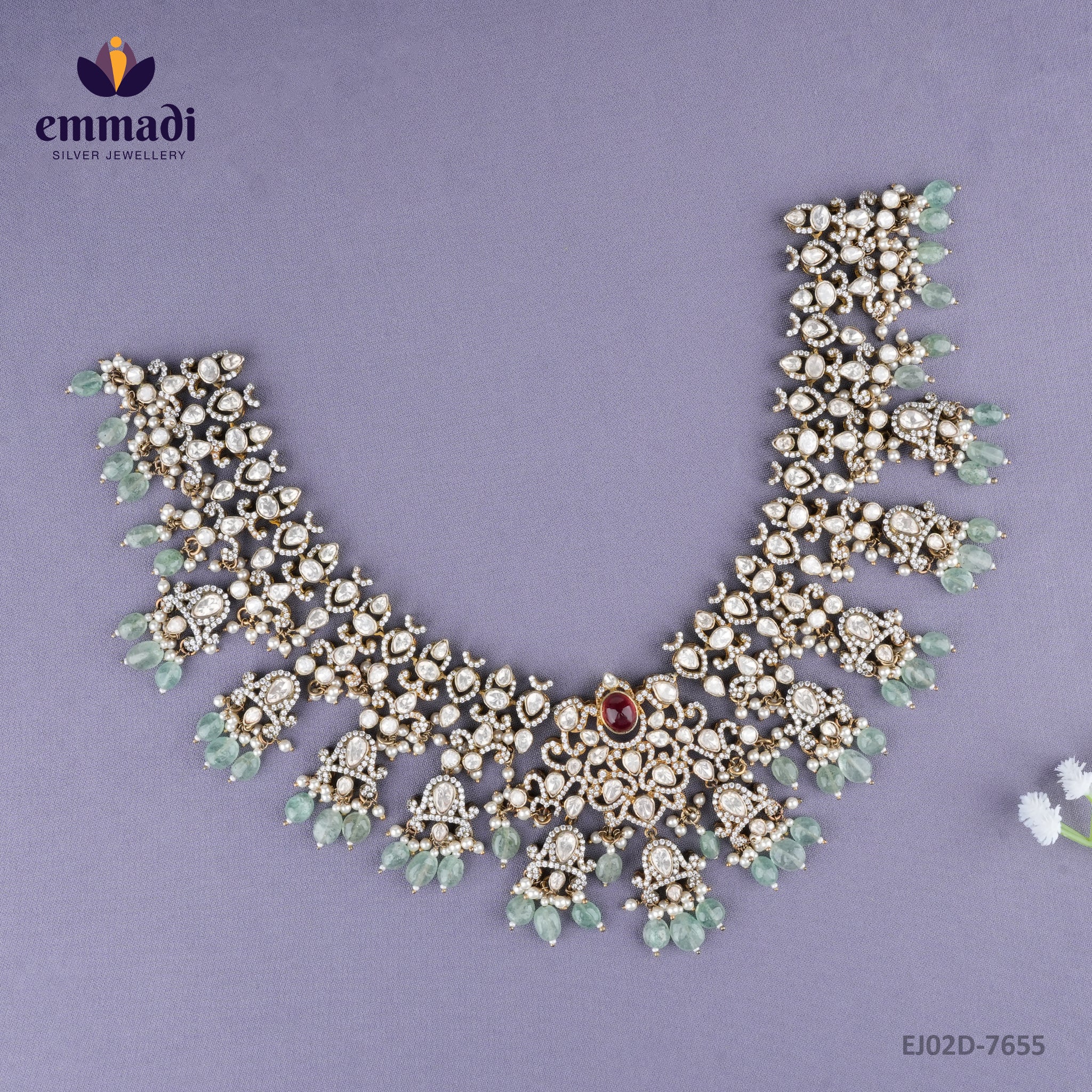 Indulge in the splendour of the Kanya Victorian Red Necklace, a dazzling masterpiece brought to you by Emmadi Silver Jeweller, India's Largest silver brand. ���� Adorn yourself with this symbol of opulence and elegance, exuding timeless charm and sophistication with every wear. Elevate your look to extraordinary levels with this exquisite necklace, designed to captivate all who behold it. Embrace luxury and grace with the Kanya Victorian Red Necklace - a true jewel in every sense of the word.