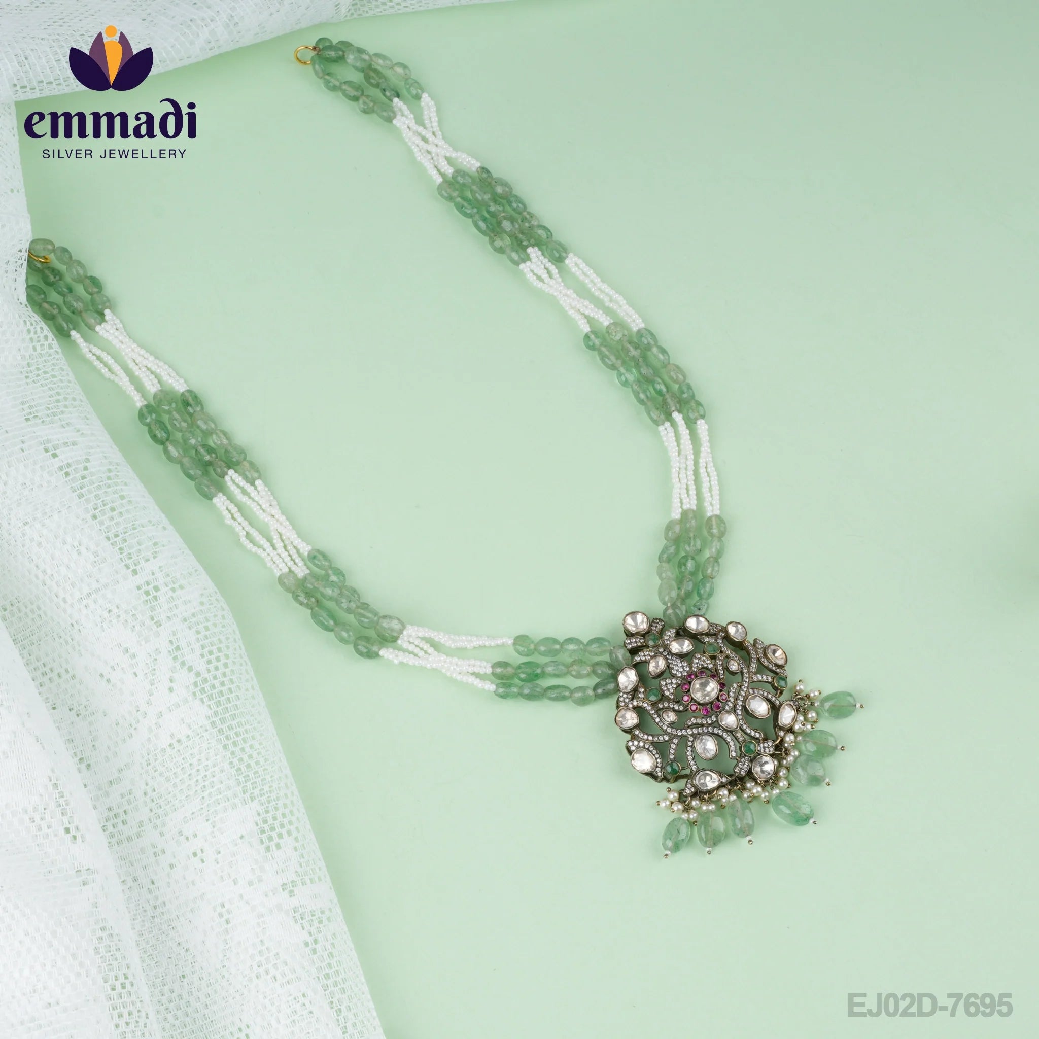 Made with pure 92.5 silver and plated with genuine gold, this necklace exudes luxury and elegance. The intricate detailing and ornate design make it a true work of art. Each piece is carefully handcrafted by skilled artisans at Emmadi Jewellers, ensuring top-notch quality and craftsmanship.