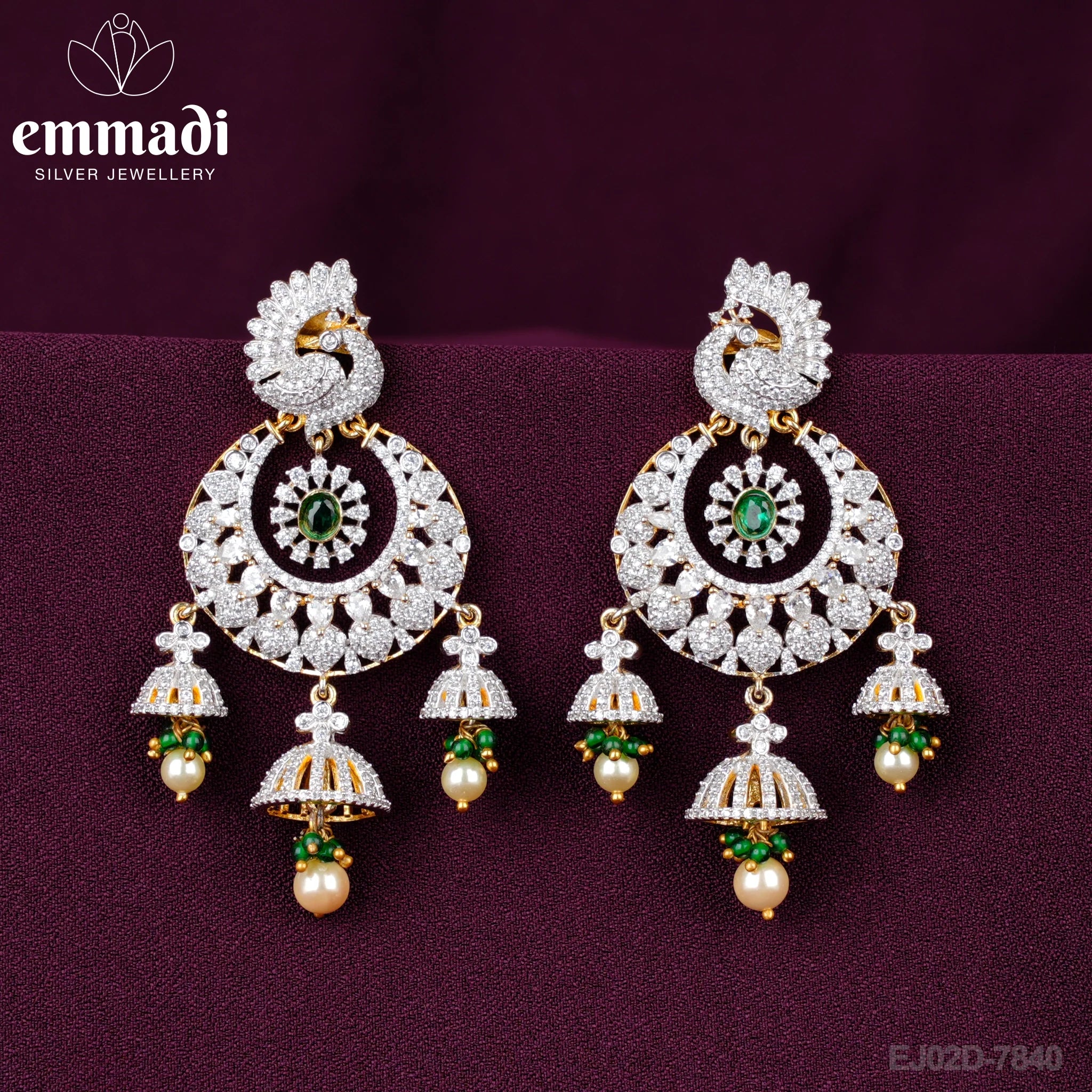 Indulge in luxury and style with the Indradhanush Handcrafted Premium CZ Green Hangings from Emmadi Jewellers. Elevate your look and add a touch of glamour to any ensemble with these exquisite earrings that are sure to become a treasured addition to your jewelry collection.