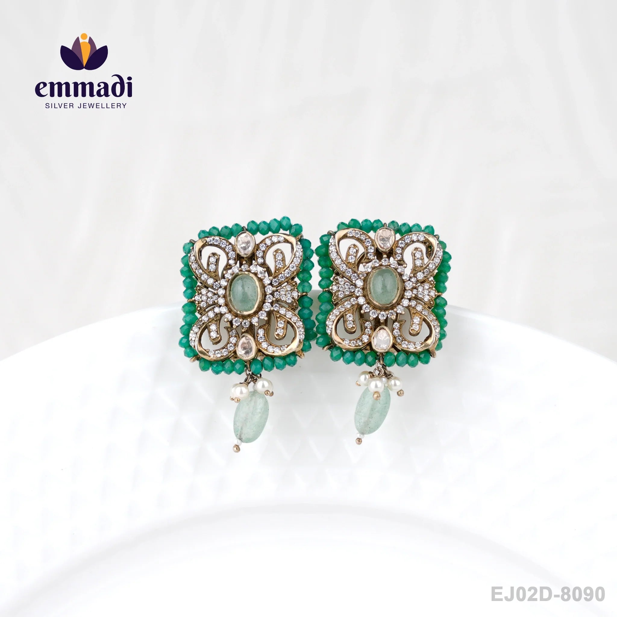 The Victorian Green Studs are a perfect blend of traditional Indian design and modern elegance. Whether you're dressing up for a special occasion or simply want to add a touch of glamour to your everyday look, these earrings are sure to dazzle and impress. The versatility of these studs makes them a must-have accessory for any jewelry lover.