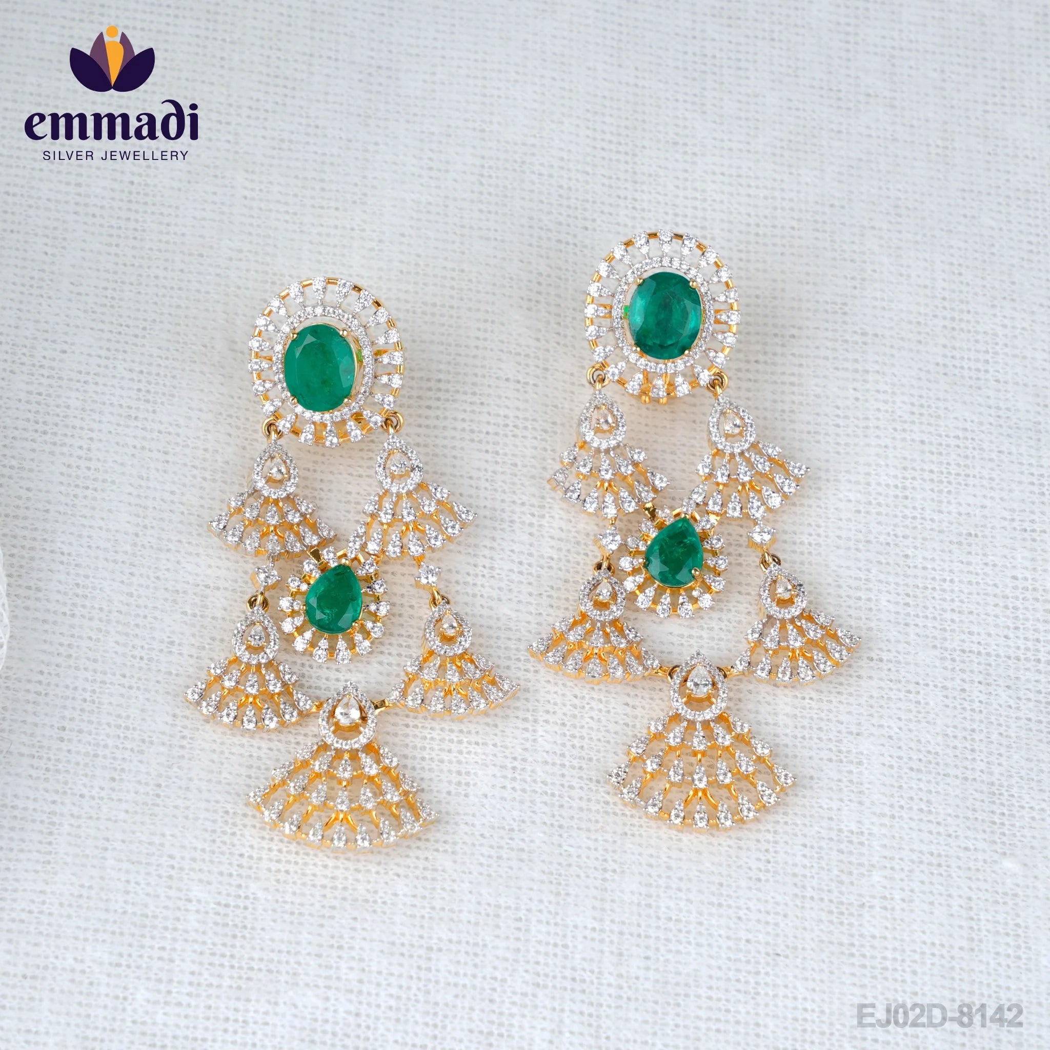 Indulge in luxury and style with the Indradhanush Handcrafted Premium CZ Green Hangings from Emmadi Jewellers. Elevate your look and add a touch of glamour to any ensemble with these exquisite earrings that are sure to become a treasured addition to your jewelry collection.