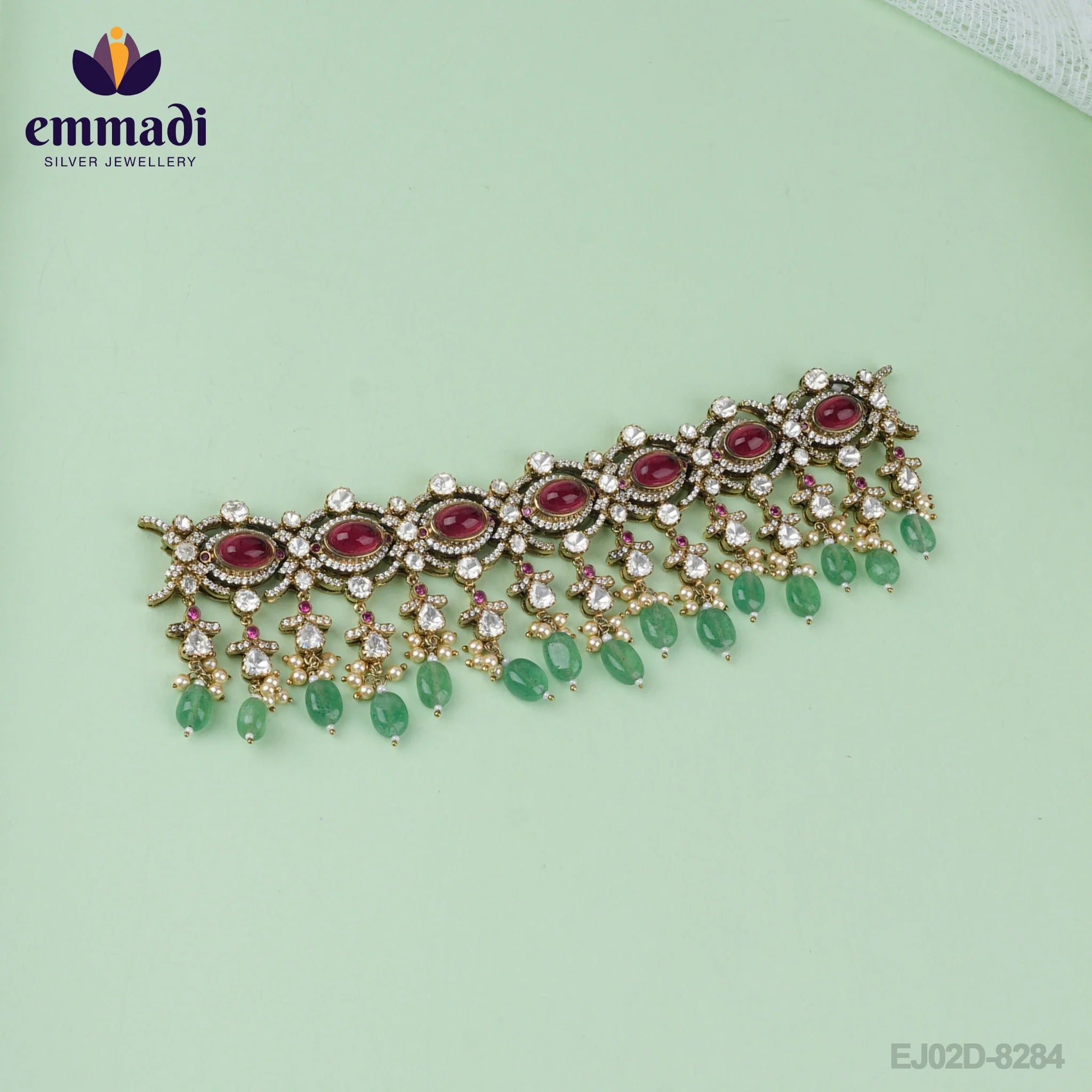 Make a statement with the Arunima Handcrafted Choker from Emmadi Jewellers. Crafted with care and attention to detail, this stunning piece is a true work of art that will elevate any outfit and make you feel like a queen.