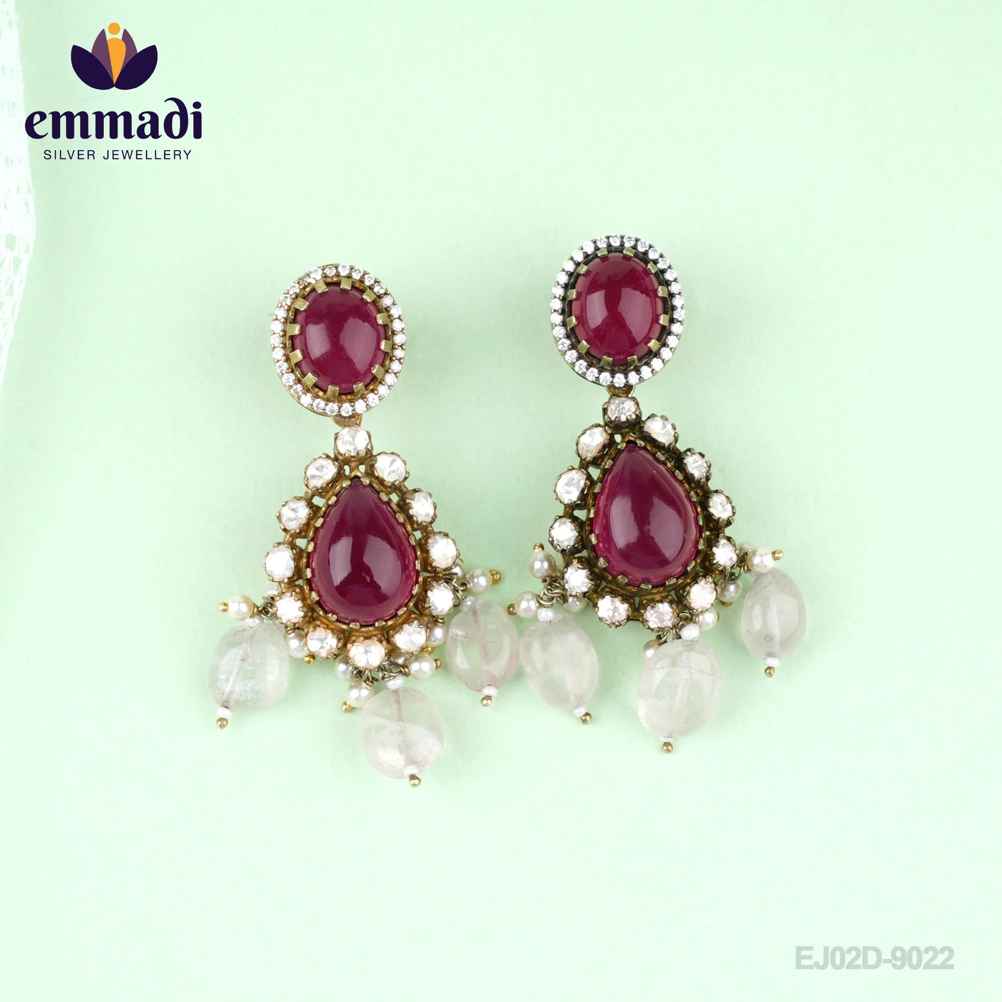 Our Arunima Handcrafted Jewelry collection features exquisite hangings with a Victorian Pink design, handcrafted with 92.5 silver and pure gold plating by Emmadi Jewellers. Each piece is carefully crafted with intricate details and stunning embellishments, making it a timeless and elegant addition to your jewelry collection.