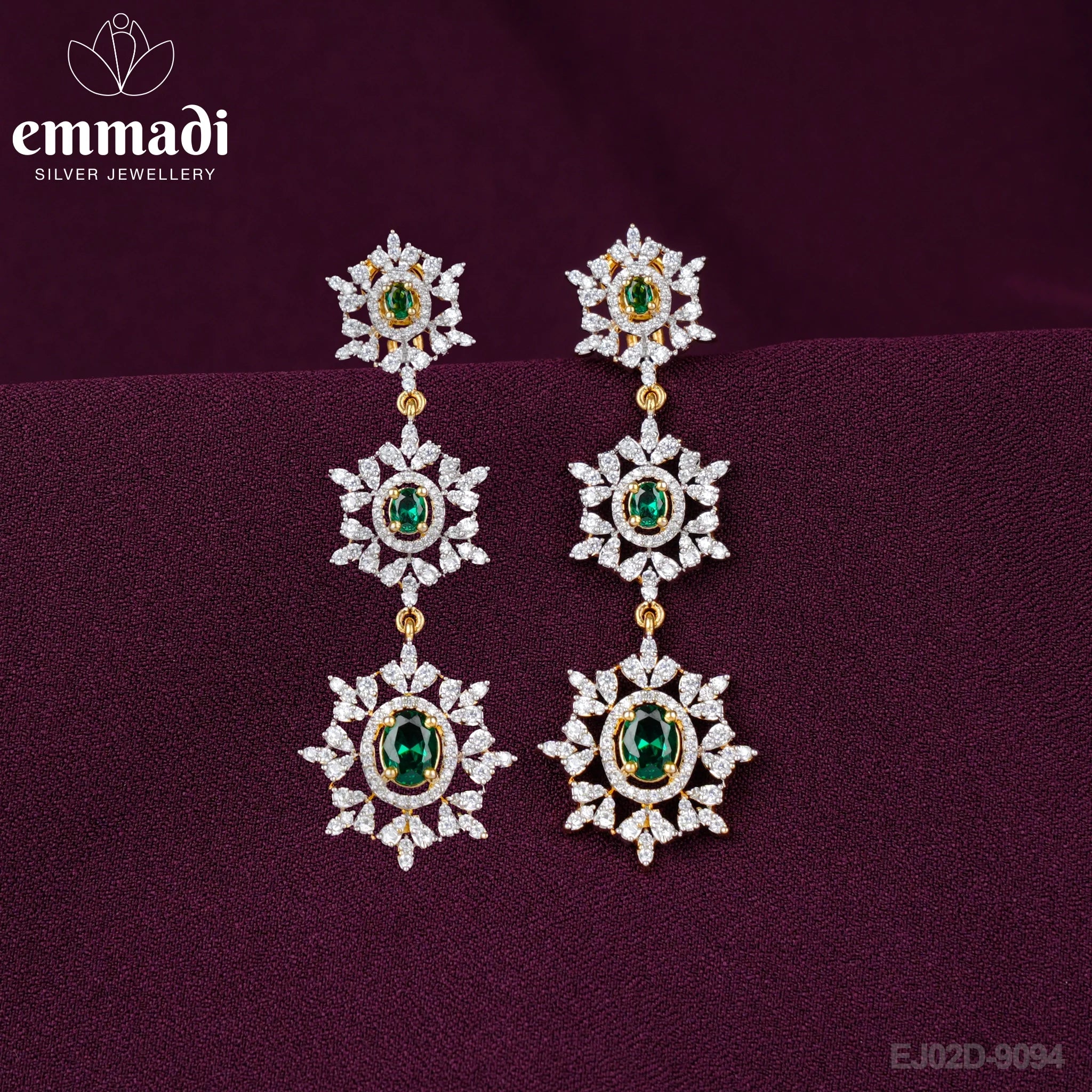 Indulge in luxury and style with the Indradhanush Handcrafted Premium CZ Green Hangings from Emmadi Jewellers. Elevate your look and add a touch of glamour to any ensemble with these exquisite earrings that are sure to become a treasured addition to your jewelry collection.