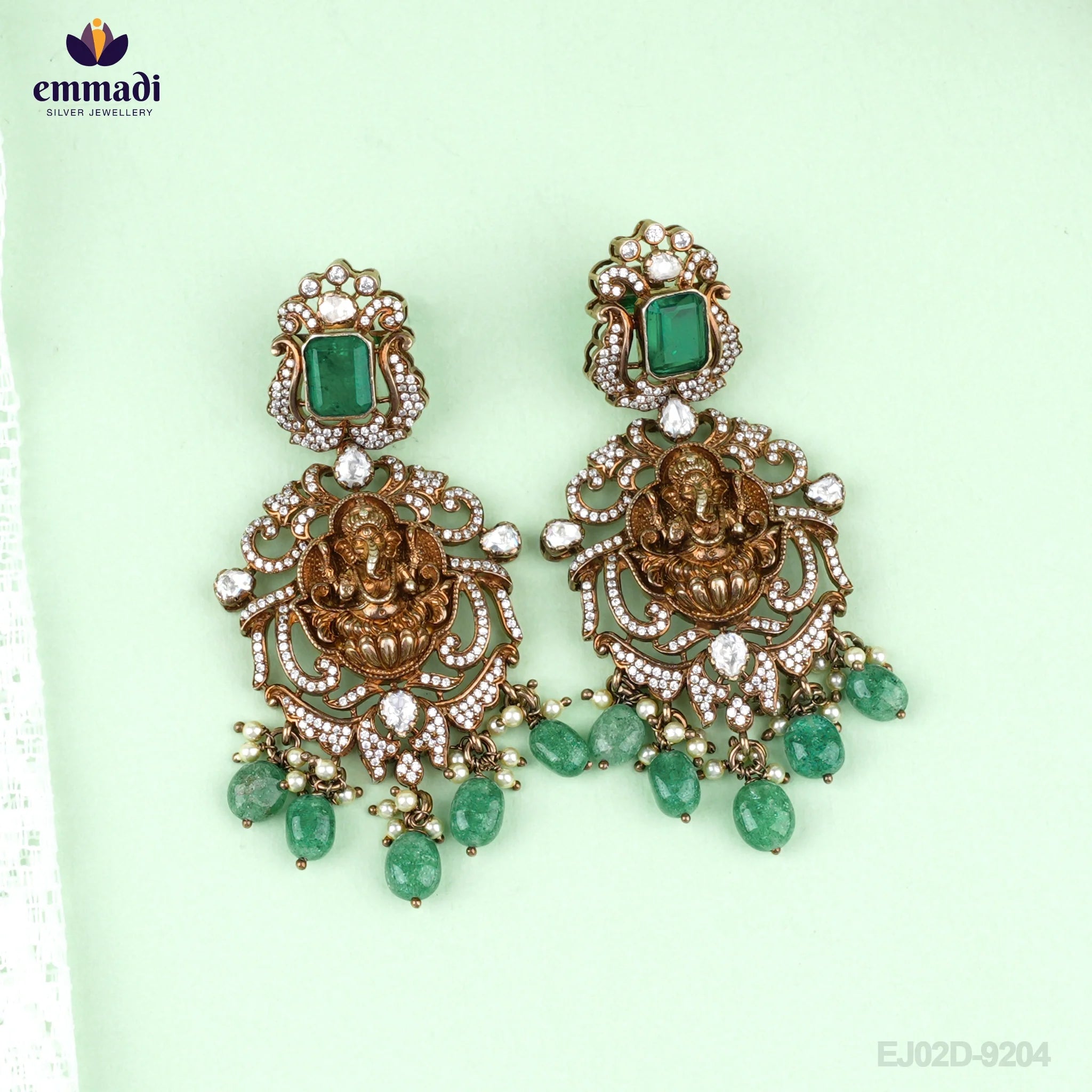 Indulge in luxury and elegance with the Hangings Victorian Green from Emmadi Jewellers. Make a statement and add a touch of glamour to your look with these exquisite handcrafted earrings.