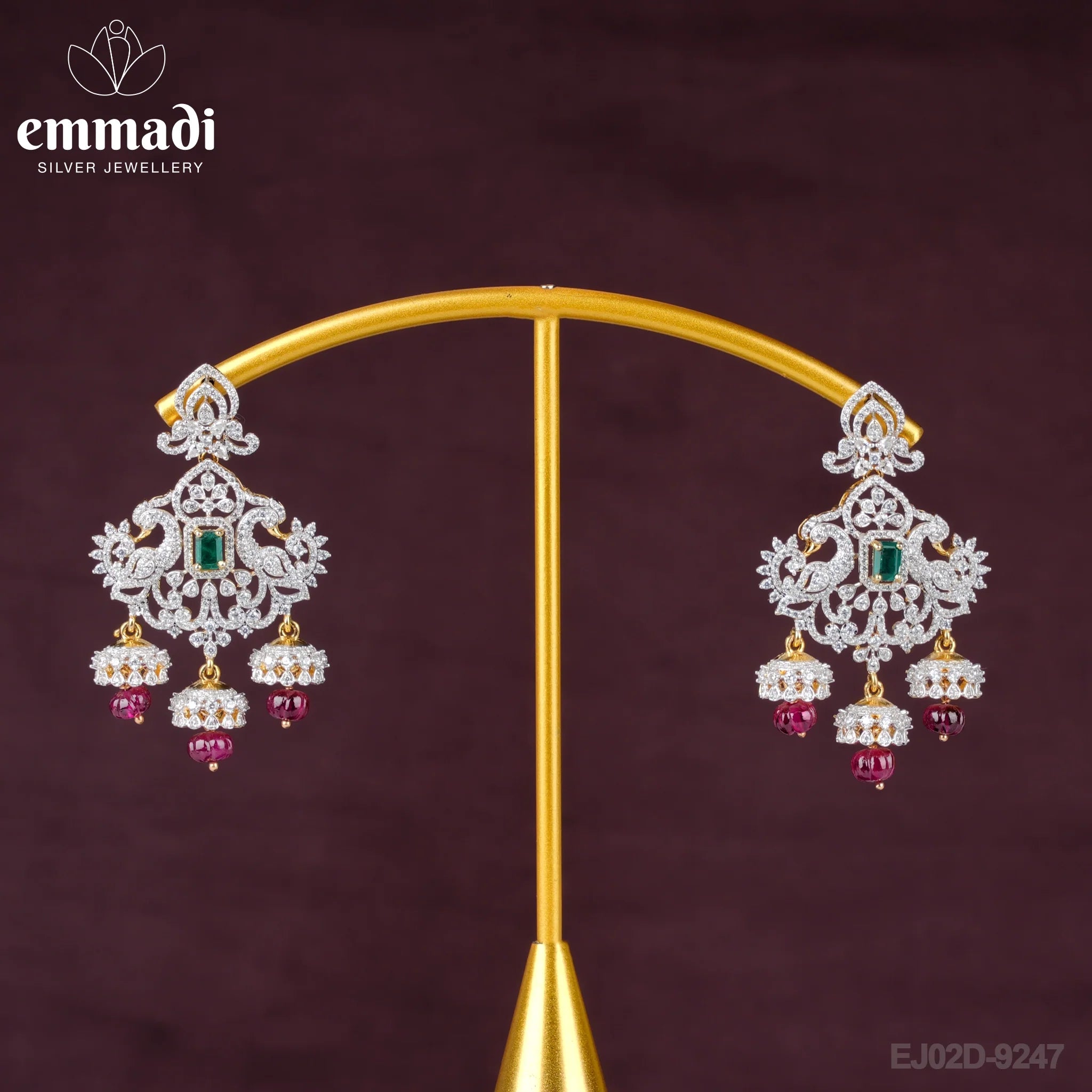 Indulge in luxury and style with the Indradhanush Handcrafted Premium CZ Green Hangings from Emmadi Jewellers. Elevate your look and add a touch of glamour to any ensemble with these exquisite earrings that are sure to become a treasured addition to your jewelry collection.