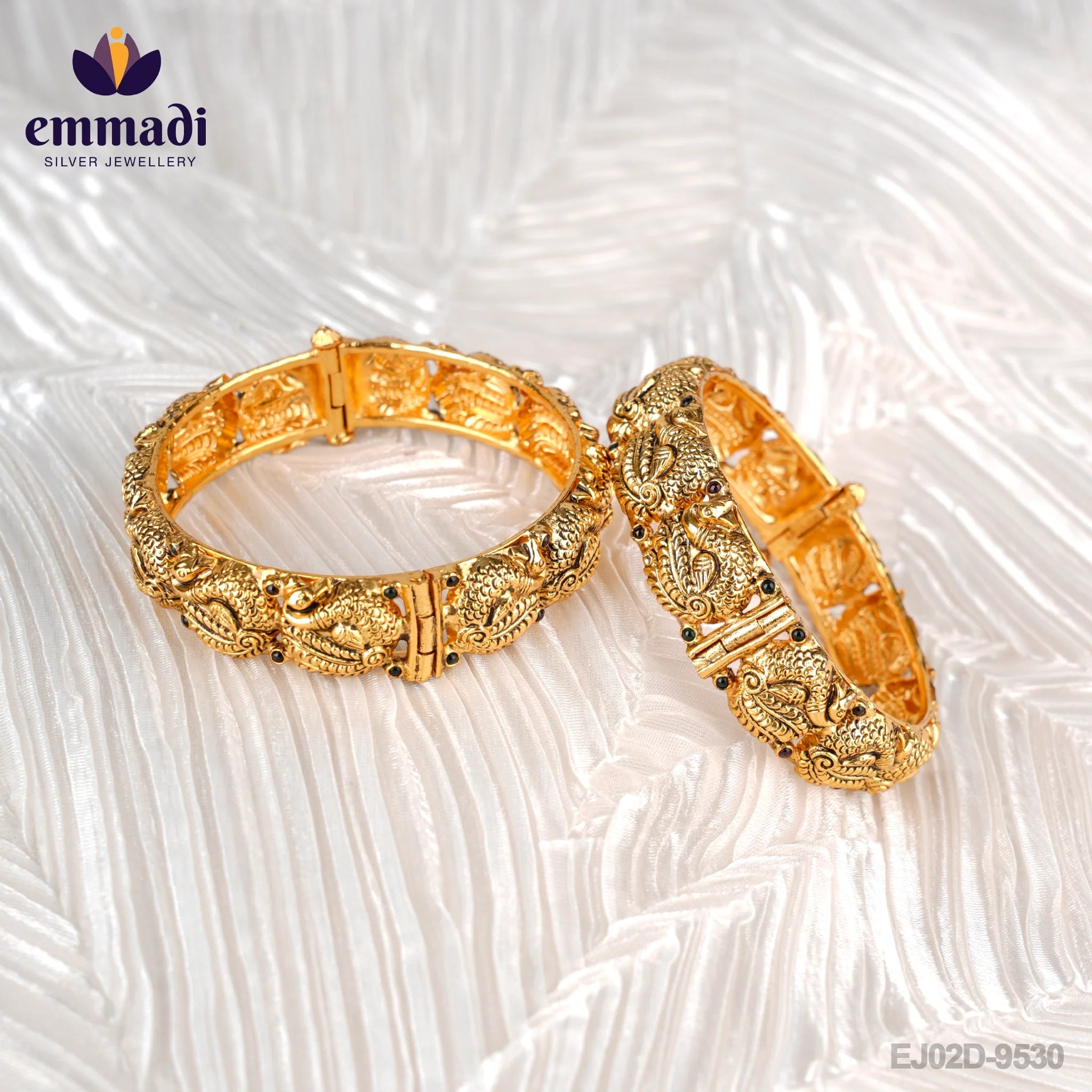 The Nakshi Multi Bangles are versatile pieces that can be worn alone for a simple and elegant look, or stacked together for a bold and eye-catching statement. The intricate design of the bangles adds a touch of traditional Indian beauty to any outfit, making them the perfect accessory for any occasion.