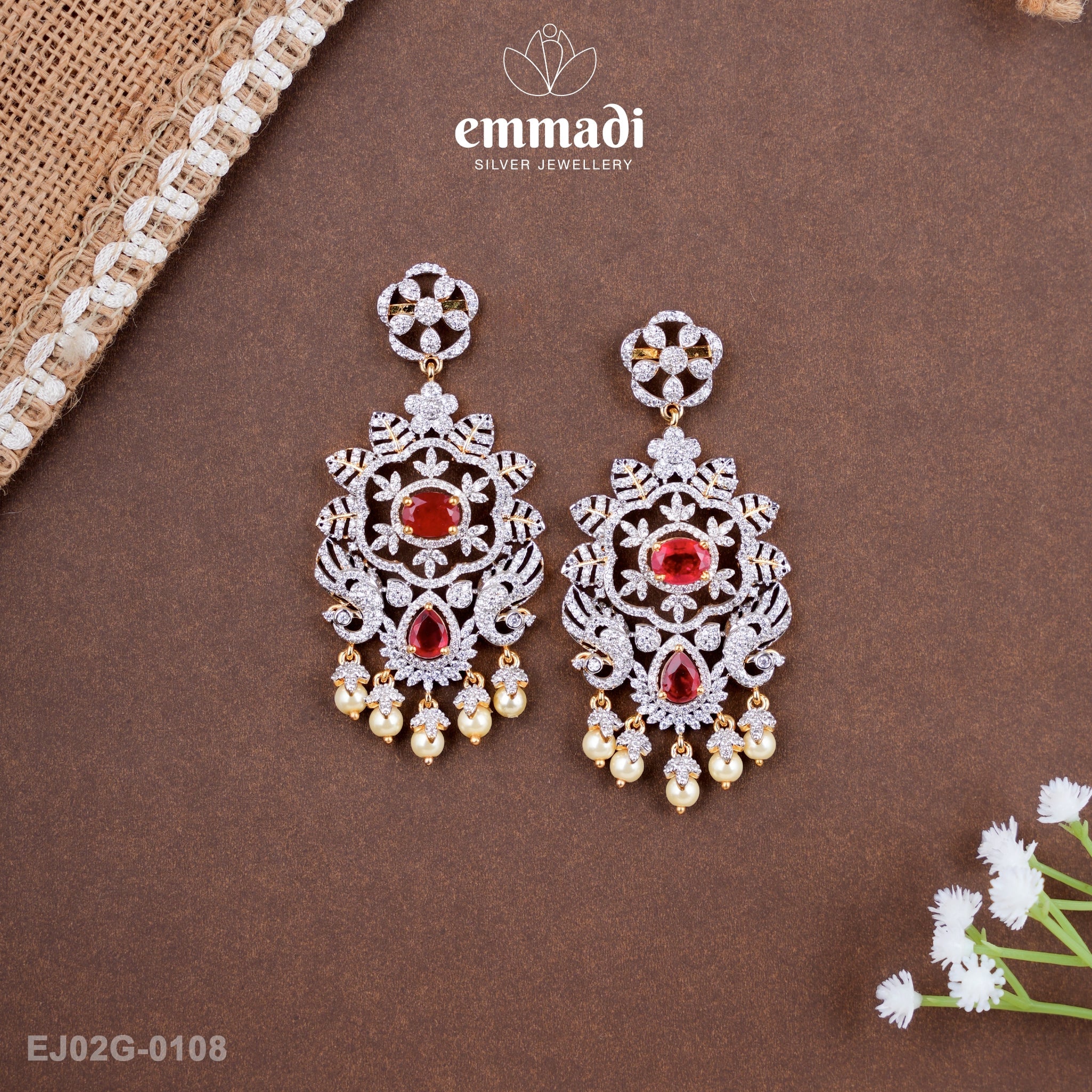 Indulge in the opulent elegance of Niyla Premium CZ Red Hangings, crafted by Emmadi Silver Jeweller, India's Largest silver brand. Elevate your style with these exquisite earrings, featuring dazzling red CZ stones that exude sophistication and glamour. Perfect for adding a touch of luxury to any outfit, these hangings are a must-have accessory for those who appreciate fine craftsmanship and timeless beauty. Make a statement and dazzle with Niyla Premium CZ Red Hangings.