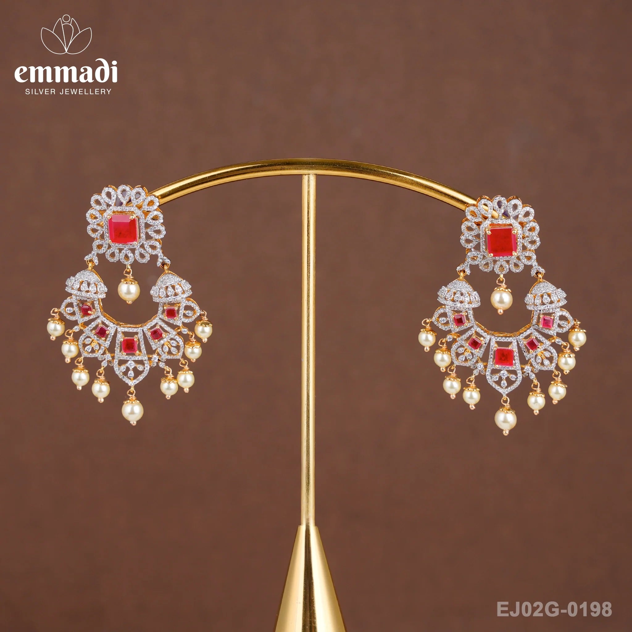 Indulge in the opulent allure of P?tha Premium Cz Red Hangings, the epitome of elegance. Created by Emmadi Silver Jeweller, India's Largest silver brand, these exquisite earrings exude luxury and sophistication. Let your style reign supreme with these dazzling red hangings that are destined to elevate any outfit to sheer perfection. Experience the glamour and prestige that come with adorning yourself with these impeccable pieces. Elevate your look and embrace the essence of luxury with P?tha Premium Cz Red Hangings.