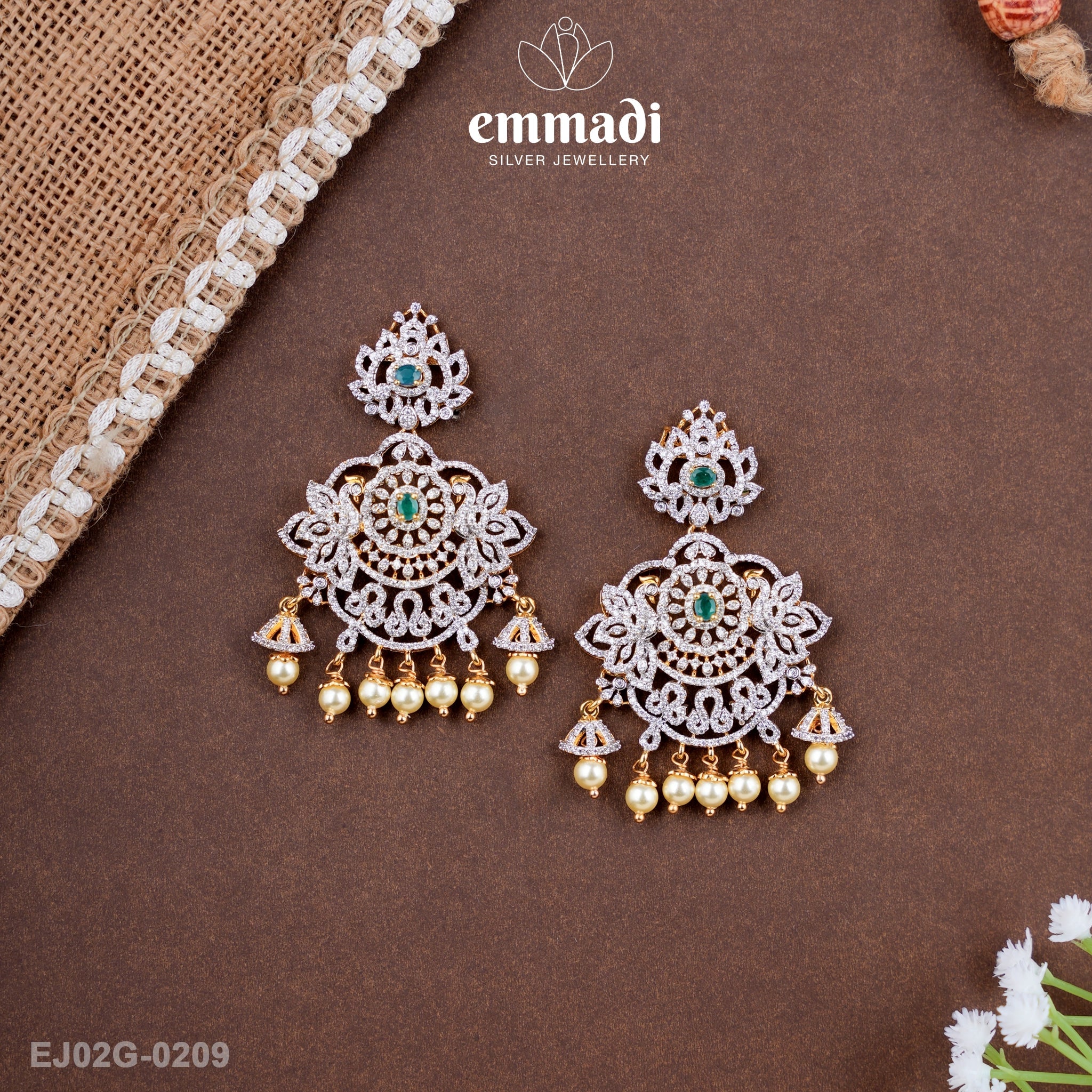 Indulge in the exquisite beauty of Radha Premium Cz Green Hangings by Emmadi Silver Jeweller, India's Largest silver brand. Elevate your style with these captivating earrings, featuring dazzling green Cz stones that exude luxury and sophistication. Make a statement with every wear and embrace the opulence of these premium earrings that are sure to turn heads wherever you go. Elevate your jewellery collection with the timeless elegance of Radha Premium Cz Green Hangings.
