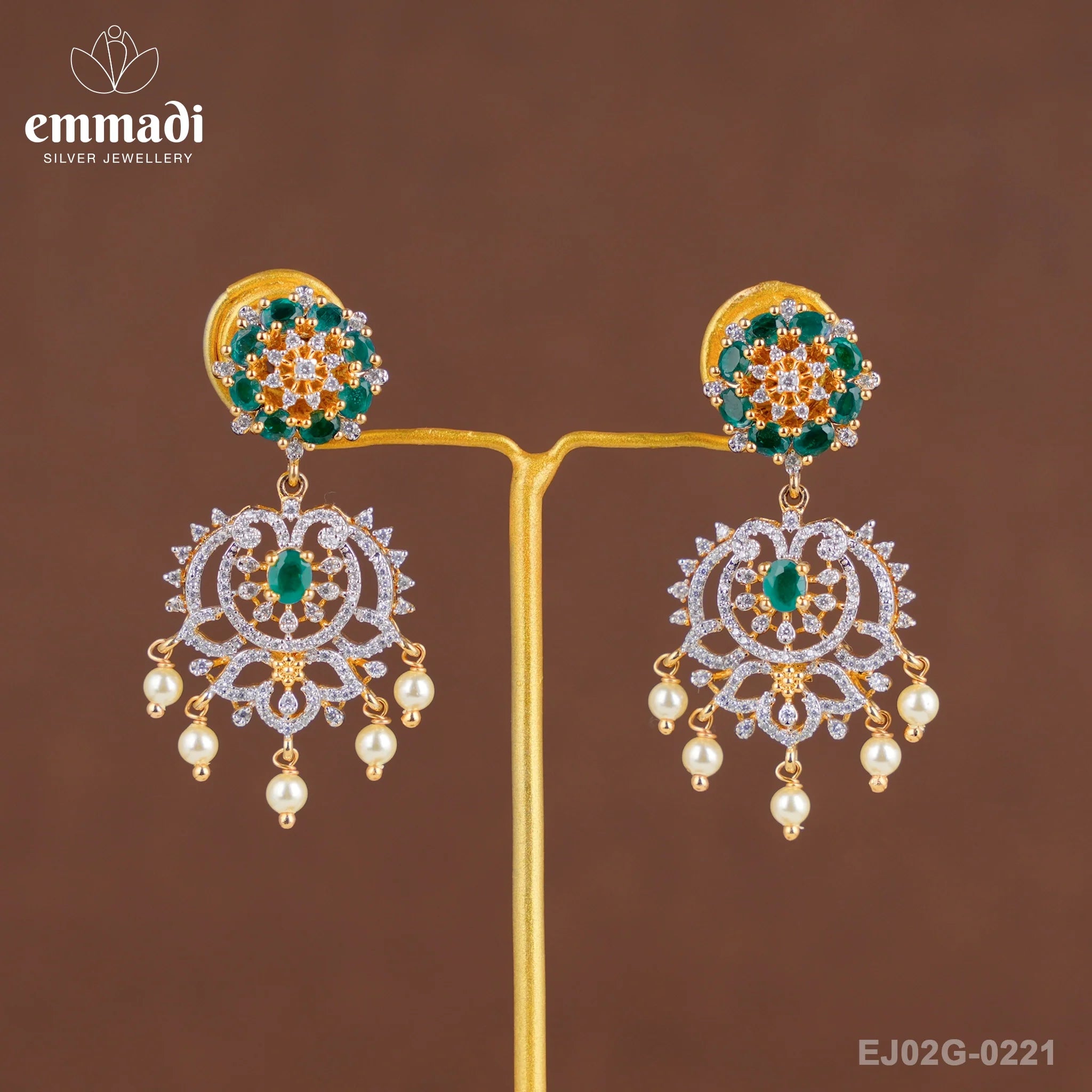 Indulge in the allure of luxury with Ranja Premium Cz Green Hangings from Emmadi Silver Jeweller, India's Largest silver brand. Elevate your style with these exquisite earrings, featuring stunning green CZ stones that exude elegance and sophistication. Perfect for adding a touch of glamour to any outfit, these hangings are a statement piece that will surely turn heads wherever you go. Step into the spotlight and adorn yourself with the timeless beauty of Ranja Premium Cz Green Hangings.