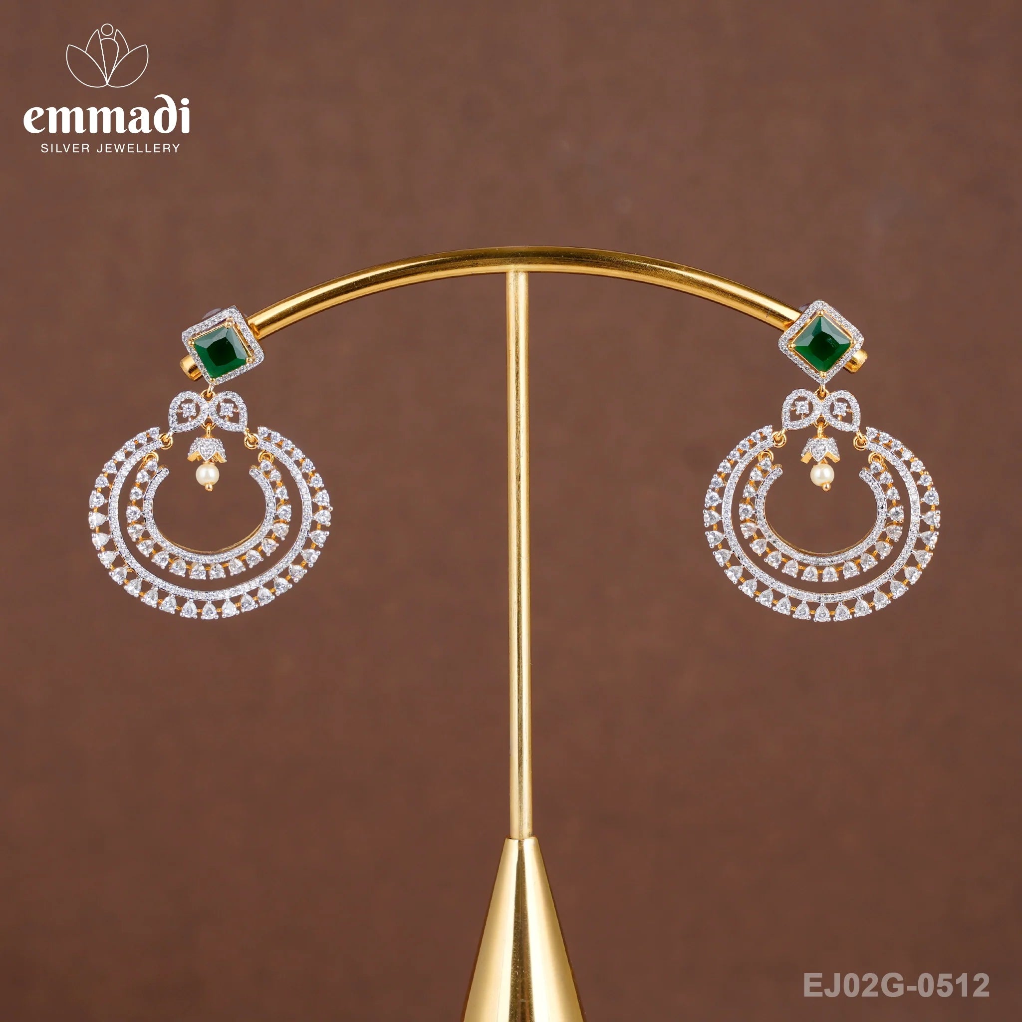 Indulge in the opulence of Tus?a Premium Cz Green Hangings, a true statement of elegance and sophistication. Crafted by Emmadi Silver Jeweller, India's Largest silver brand, these exquisite earrings are a shimmering ode to luxury. Elevate your style and exude charm with every graceful sway, as the radiant green CZ stones capture the light and reflect your unparalleled taste. Elevate your ensemble and allure with these divine hangings.