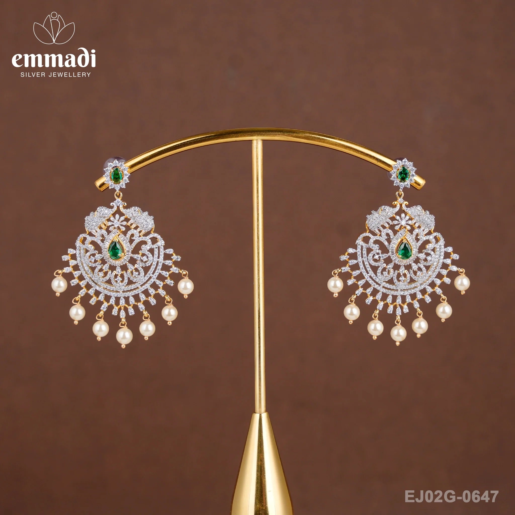Indulge in the opulent beauty of Adrija Premium Cz Green Hangings by Emmadi Silver Jeweller, India's Largest silver brand. Elevate your style with these exquisite earrings that effortlessly blend sophistication with glamour. Let the mesmerising green hue and dazzling cubic zirconia stones take your ensemble to new heights of elegance. Experience luxury at its finest with Adrija Premium Cz Green Hangings.
