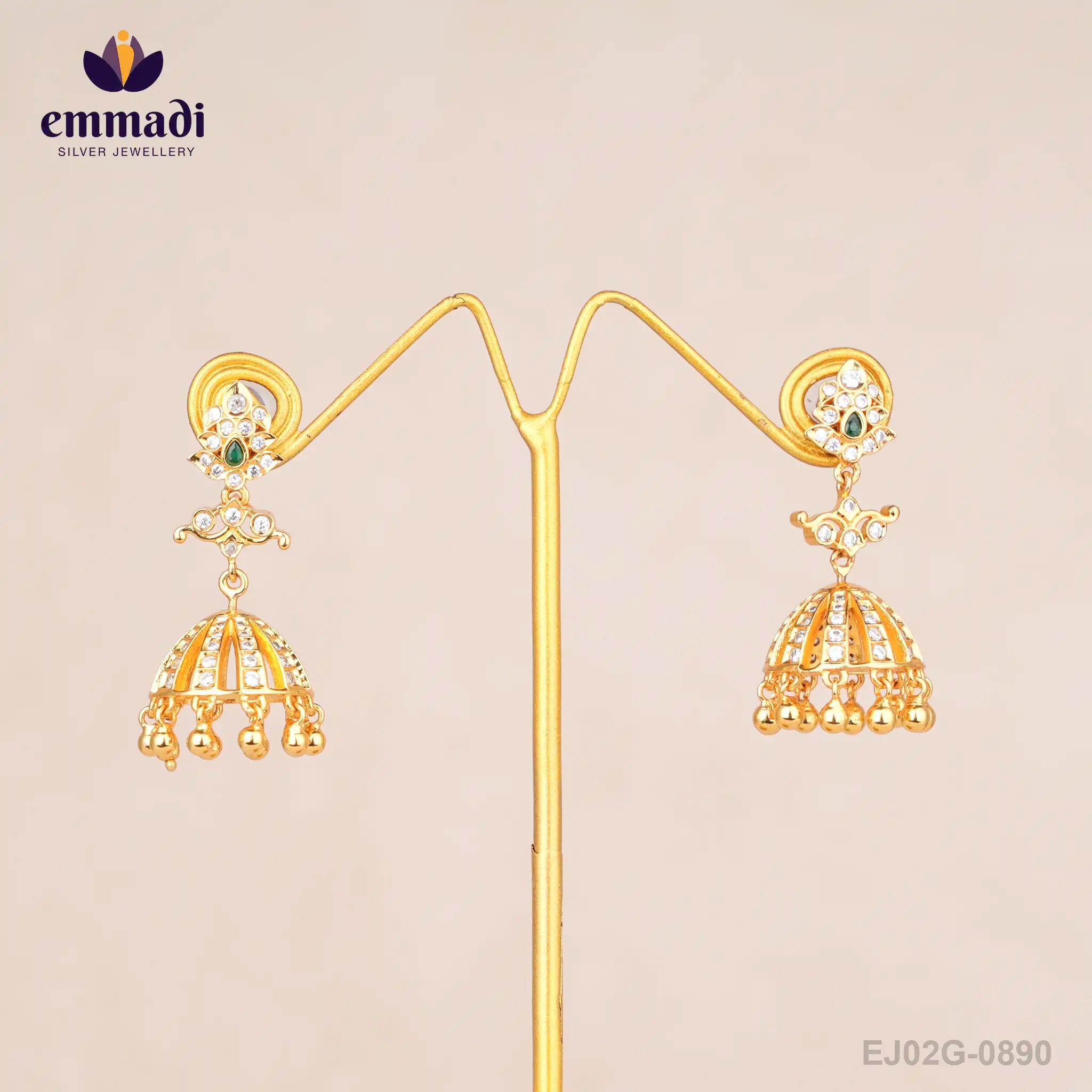 Indulge in the elegant allure of Ashnaa Stone Green Buttalu by Emmadi Silver Jeweller, India's Largest silver brand. Crafted with precision and adorned with exquisite green stones, these Buttalu radiate luxury and sophistication. Elevate your style with these stunning earrings that effortlessly blend traditional charm with modern elegance. Make a statement that is both timeless and captivating with Ashnaa Stone Green Buttalu.