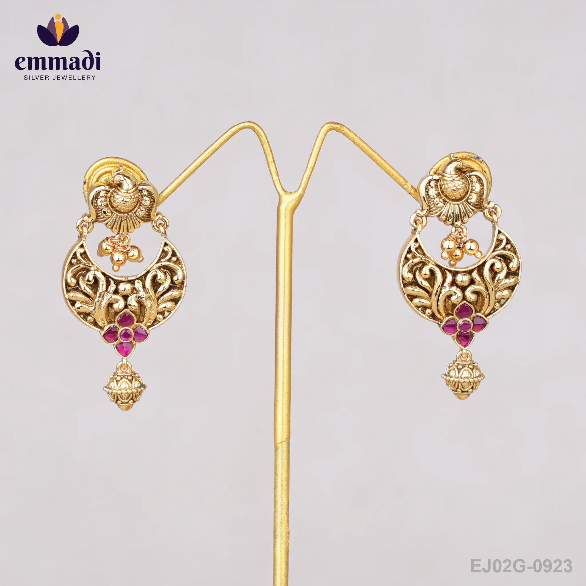 Indulge in the exquisite elegance of Avarna Premium Antique Pink Hangings, crafted to perfection by Emmadi Silver Jeweller, India's Largest silver brand. Enhance your ensemble with a touch of sophistication and grace with these mesmerising earrings. Radiating a timeless charm, these hangings are sure to elevate your style to new heights. Embrace luxury, embrace elegance - redefine your look with Avarna.